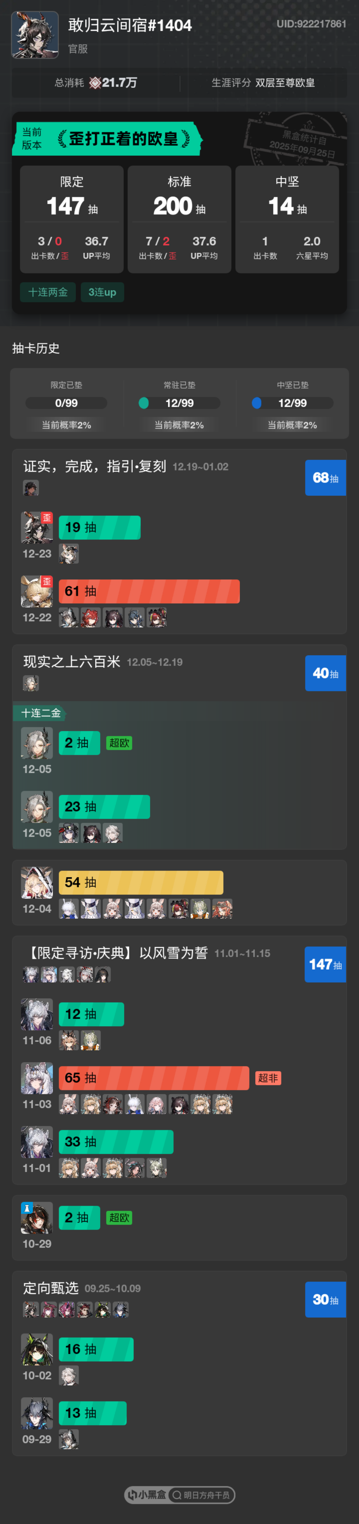 2019的号,中间因为封校未成年三年没打,到现在还没满级……所有游戏就舟欧一点……#明日方舟 #明日方舟抽卡