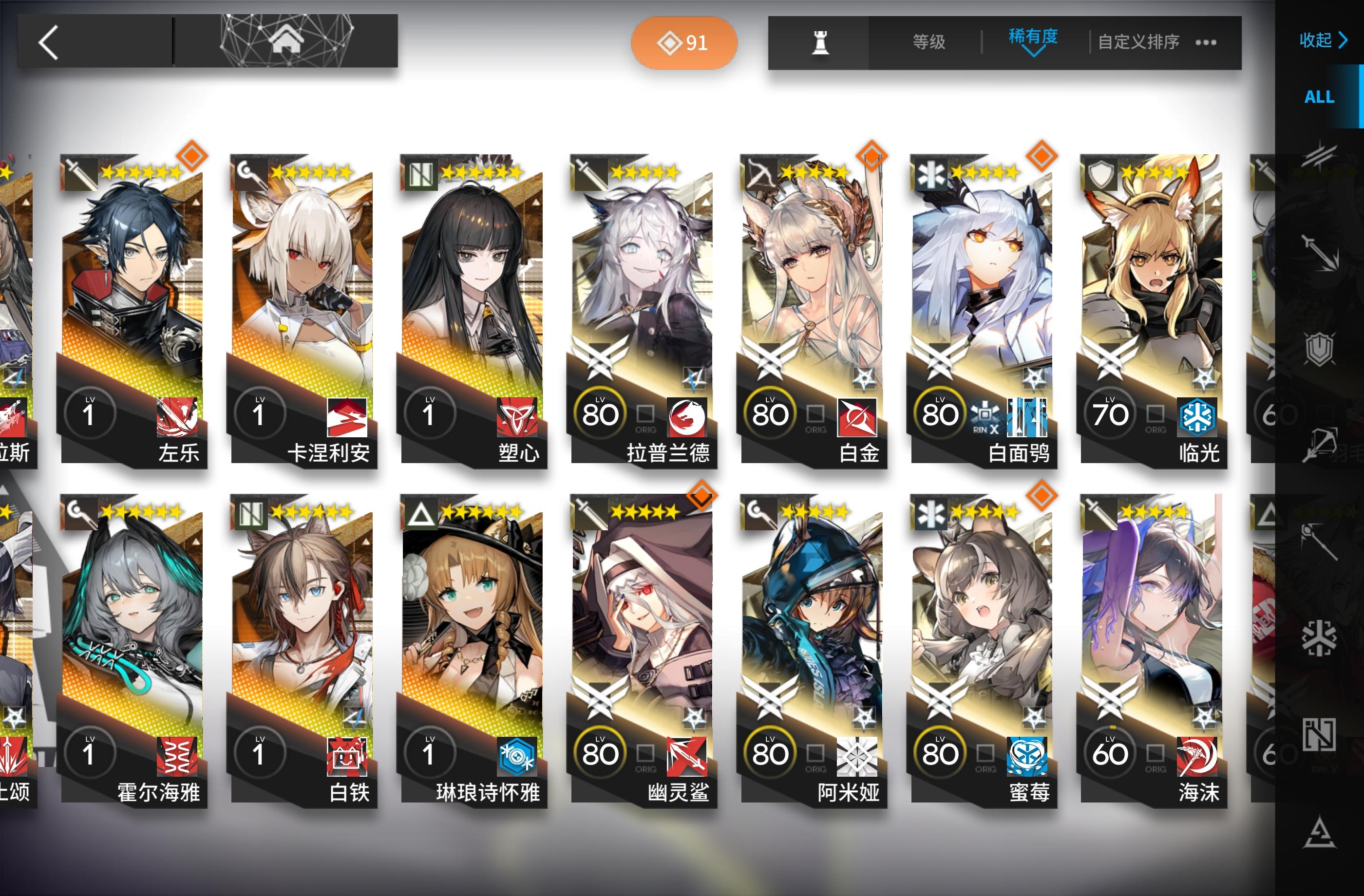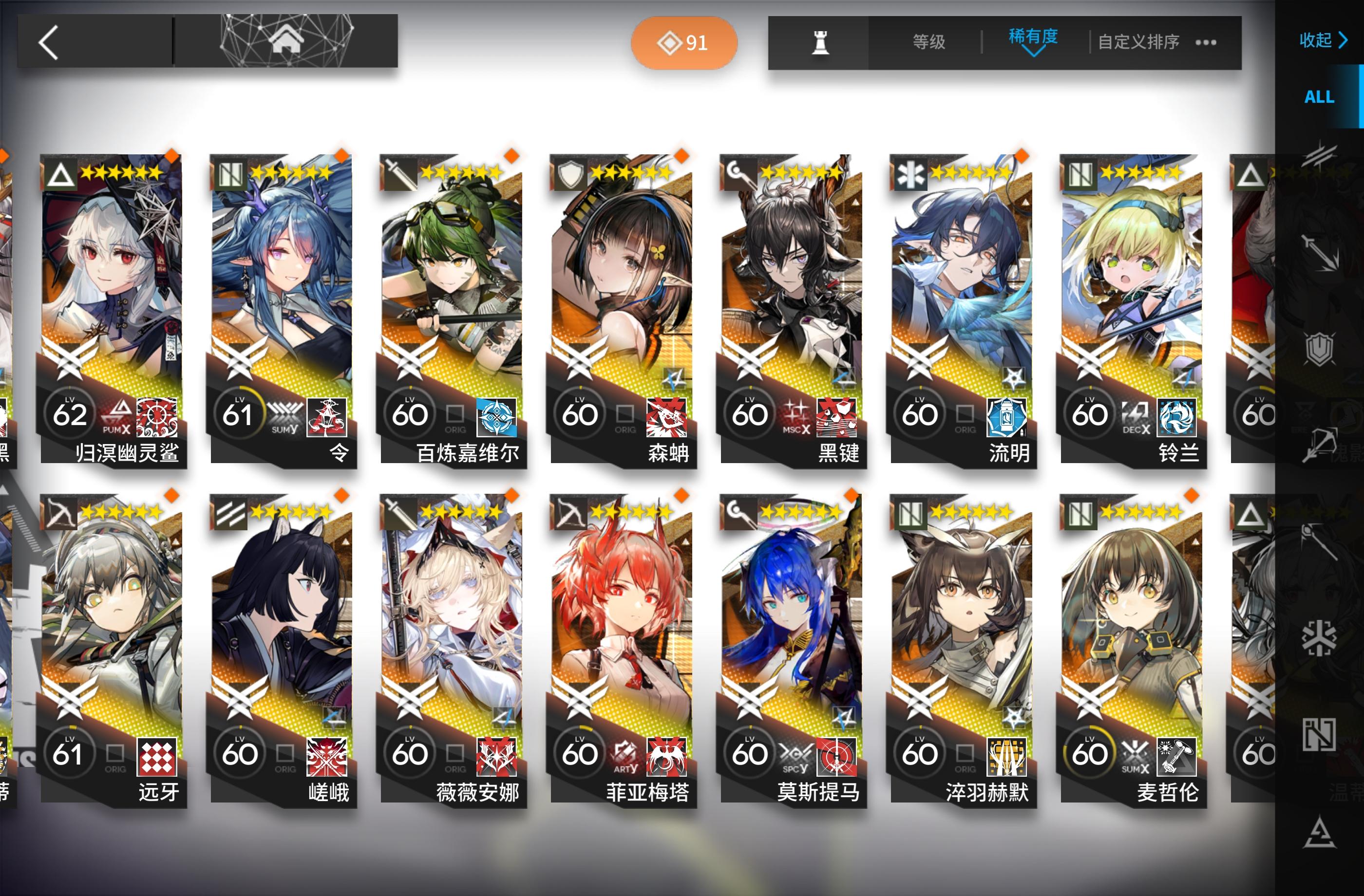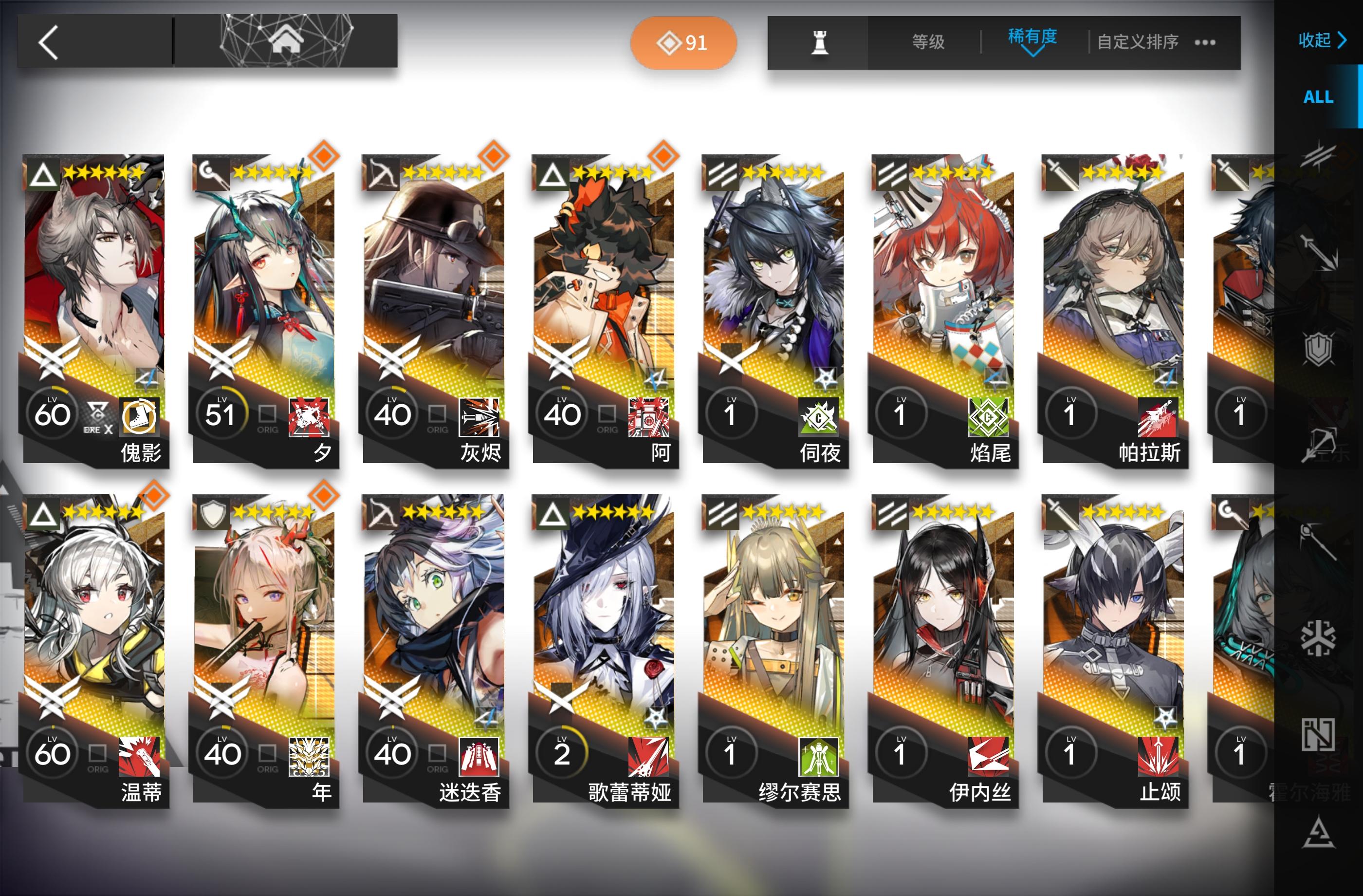 如题,我也是刚入坑没多久。练好上面这个编队里的干员就可以抄百分之九十的作业了(三星盾没练是因为我有更好的,盾位至少要3-4个,四星盾性价比最高,三星五星次之)其余的练度往我这些靠就行了,大概到精一60级左右就可以(芳汀开了技能是法术伤害,慕斯是法伤近卫+技能给怪减攻)不要去练寒芒克洛斯!我打通下来发现三星克洛斯就够用了,还是等后面需要很多狙击的时候再去练(发现寒芒克洛斯非常吃练度,不然也是刮痧)奶