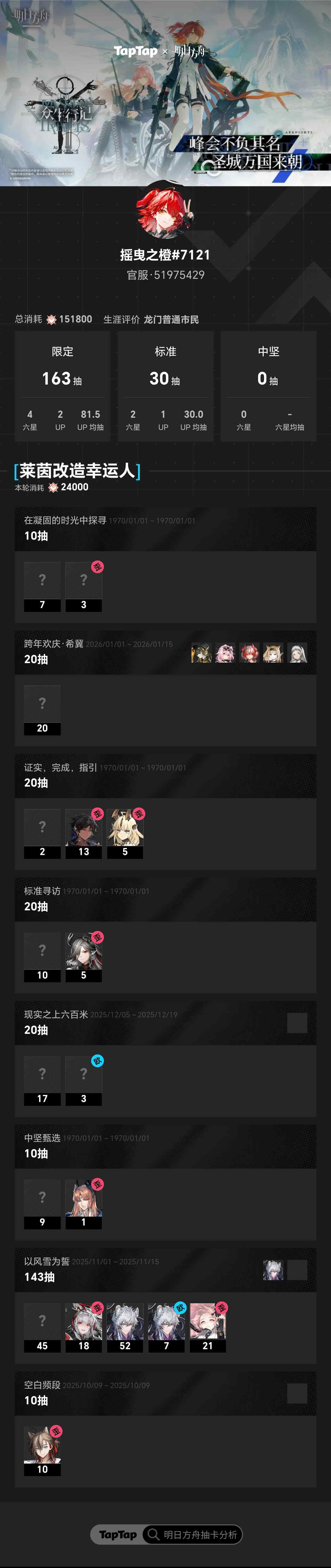#明日方舟抽卡分析 没啥好说的,常年歪是这样的啦
