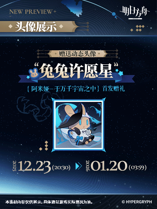 首次发售期间购买【忒斯特收藏】系列 - 于万千宇宙之中 - 阿米娅(近卫升变状态)将赠送头像:“兔兔许愿星”*1活动时间:12月23日 20:30 - 2026年01月20日 03:59——★——★——★——★——★——★——★——★——【新增服饰】//于万千宇宙之中 - 阿米娅(近卫升变状态)忒斯特收藏系列/于万千宇宙之中。阿米娅踏上的一段追寻之路。或许有失控的源石将整个世界毁灭,但于