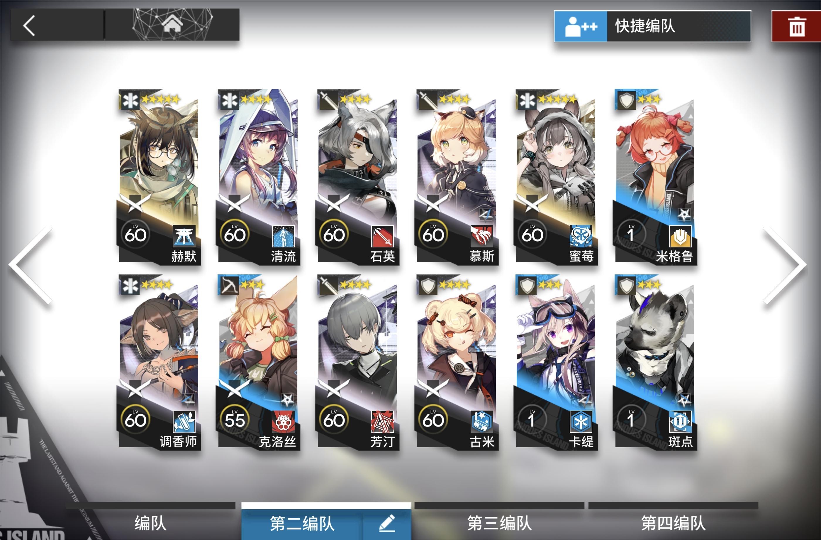 如题,我也是刚入坑没多久。练好上面这个编队里的干员就可以抄百分之九十的作业了(三星盾没练是因为我有更好的,盾位至少要3-4个,四星盾性价比最高,三星五星次之)其余的练度往我这些靠就行了,大概到精一60级左右就可以(芳汀开了技能是法术伤害,慕斯是法伤近卫+技能给怪减攻)不要去练寒芒克洛斯!我打通下来发现三星克洛斯就够用了,还是等后面需要很多狙击的时候再去练(发现寒芒克洛斯非常吃练度,不然也是刮痧)奶