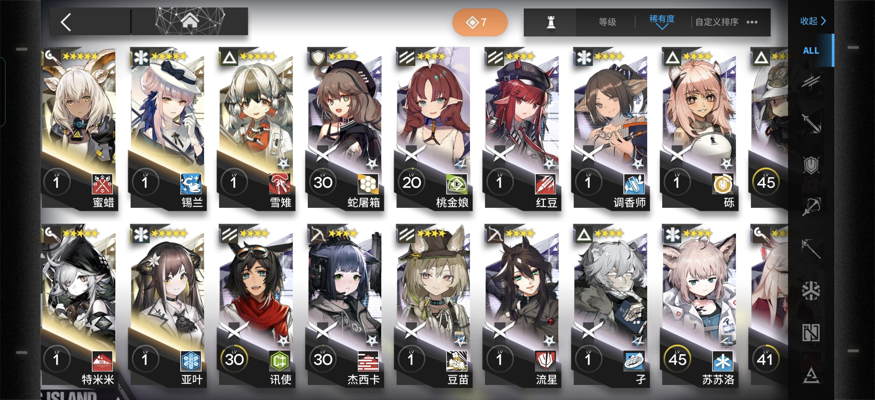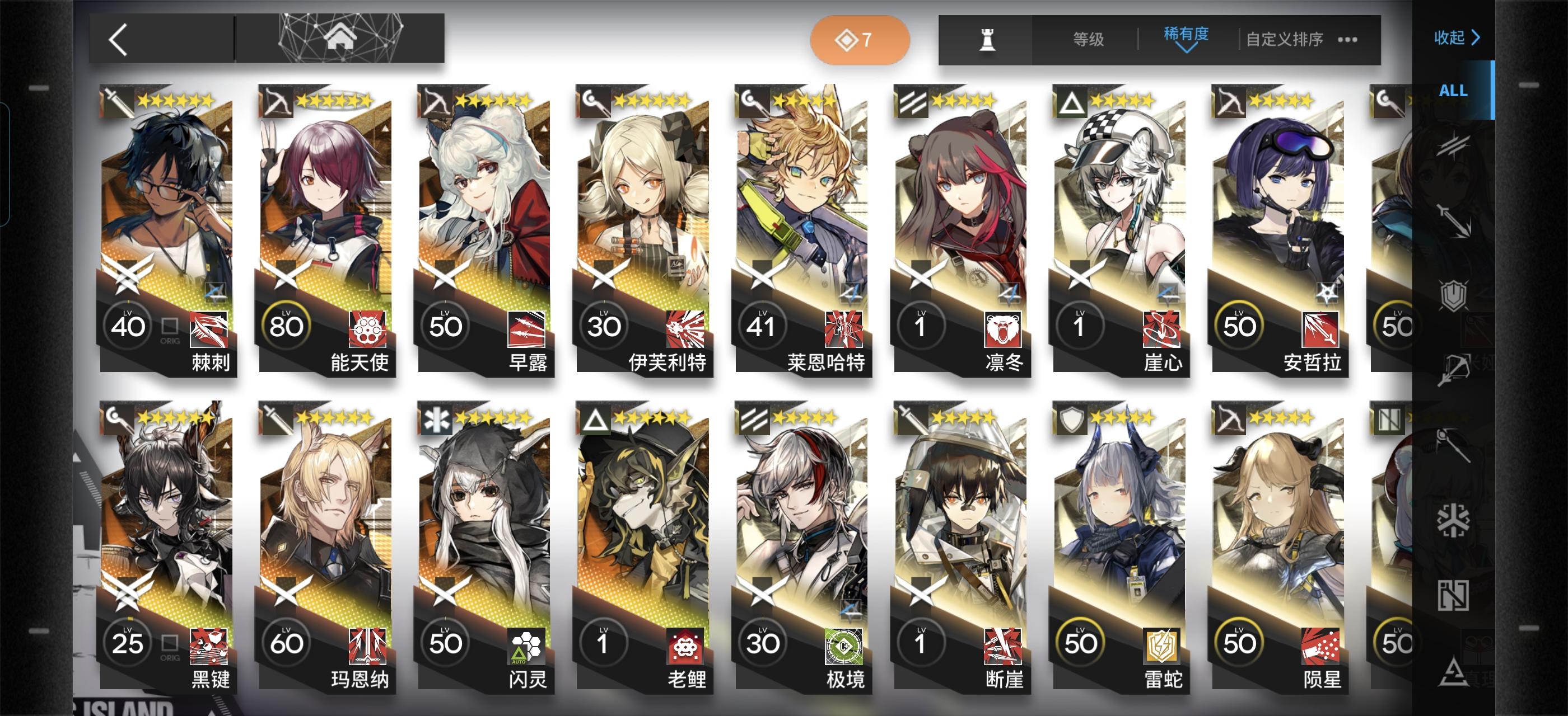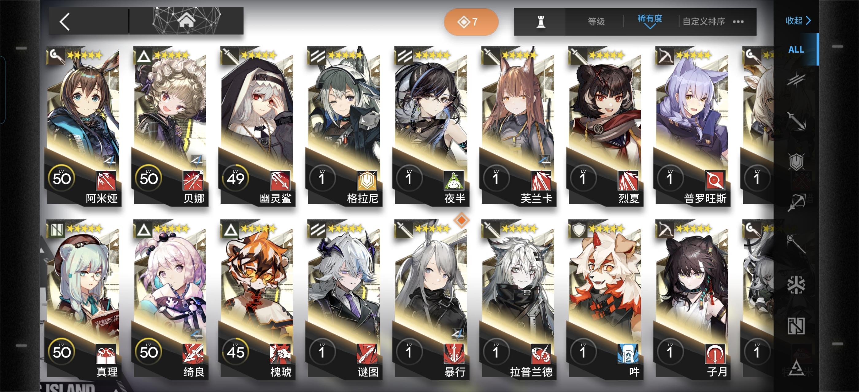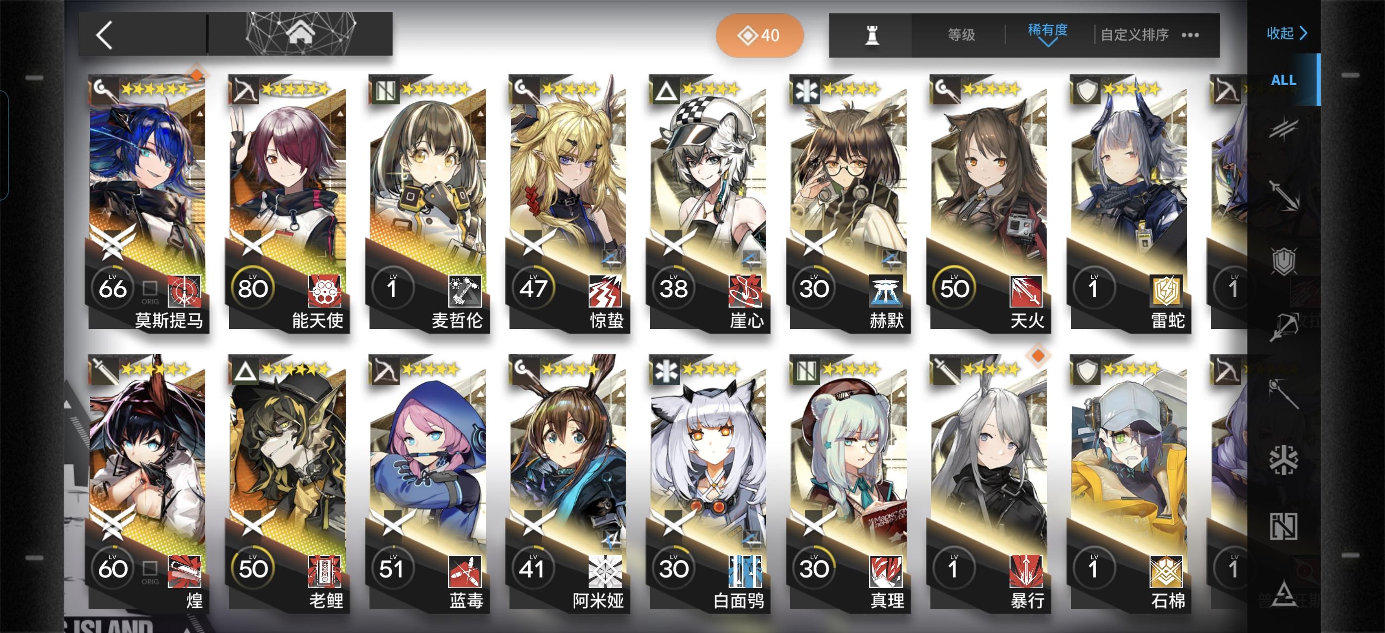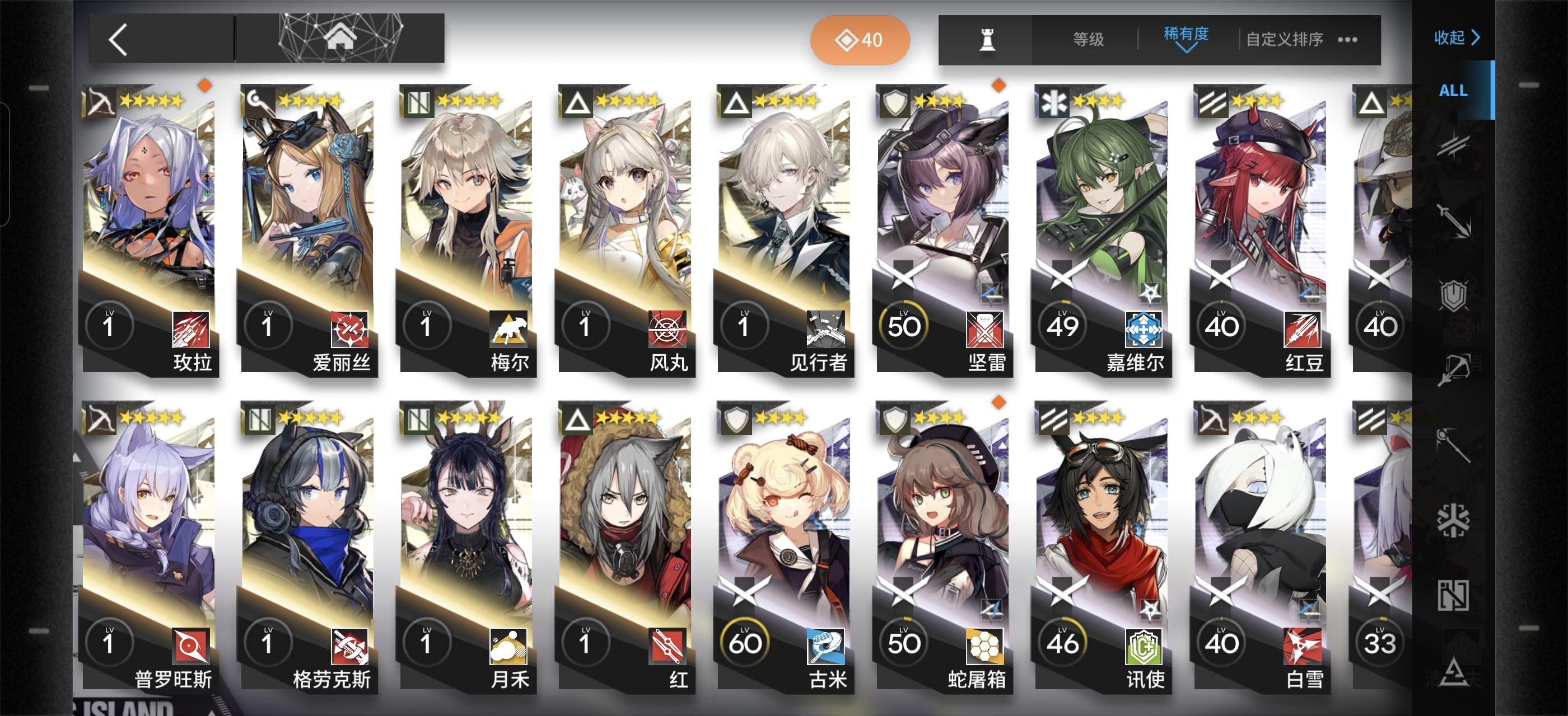 如题,我也是刚入坑没多久。练好上面这个编队里的干员就可以抄百分之九十的作业了(三星盾没练是因为我有更好的,盾位至少要3-4个,四星盾性价比最高,三星五星次之)其余的练度往我这些靠就行了,大概到精一60级左右就可以(芳汀开了技能是法术伤害,慕斯是法伤近卫+技能给怪减攻)不要去练寒芒克洛斯!我打通下来发现三星克洛斯就够用了,还是等后面需要很多狙击的时候再去练(发现寒芒克洛斯非常吃练度,不然也是刮痧)奶