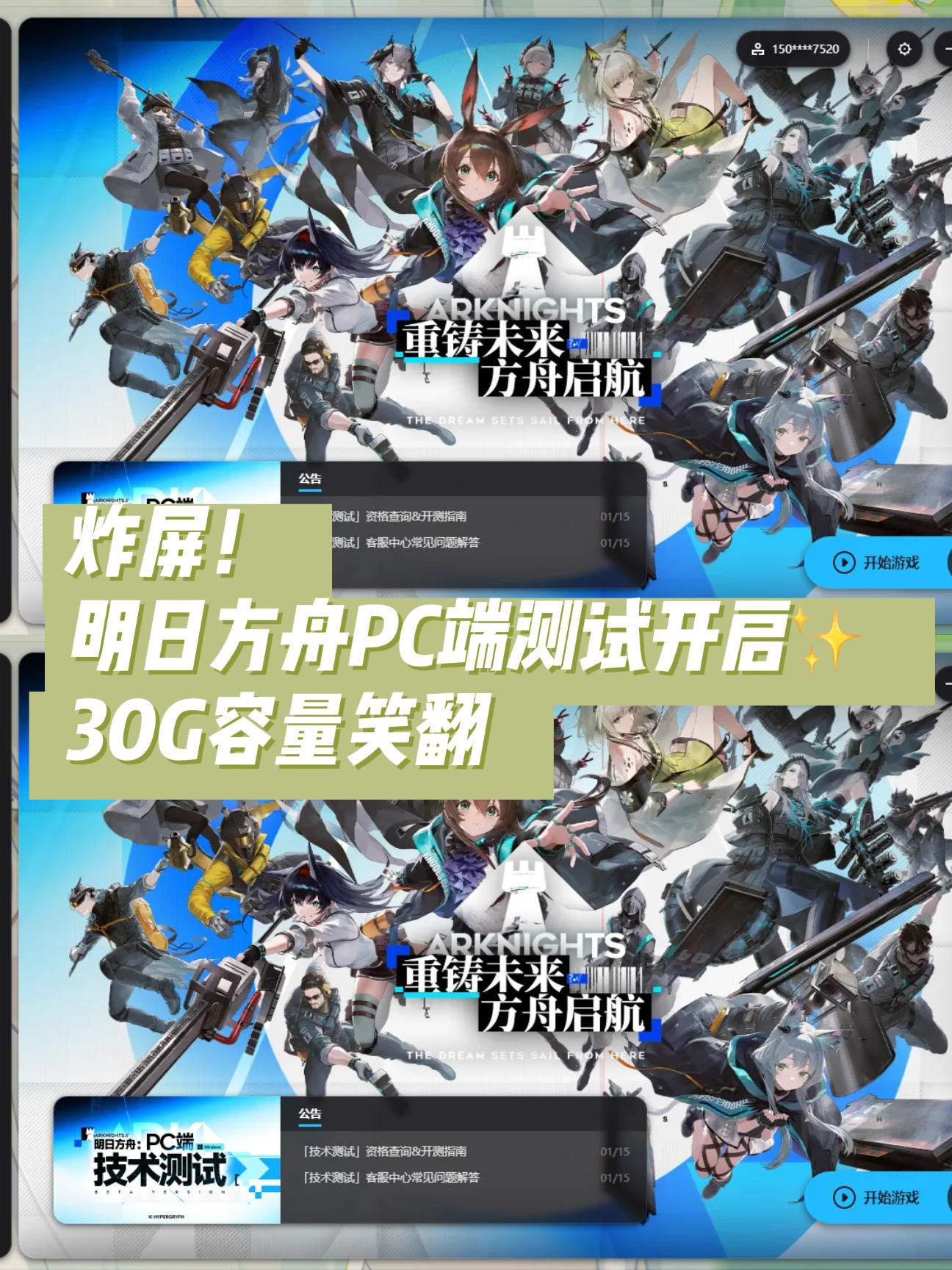炸屏!明日方舟PC端测试开启✨ 30G容量笑翻