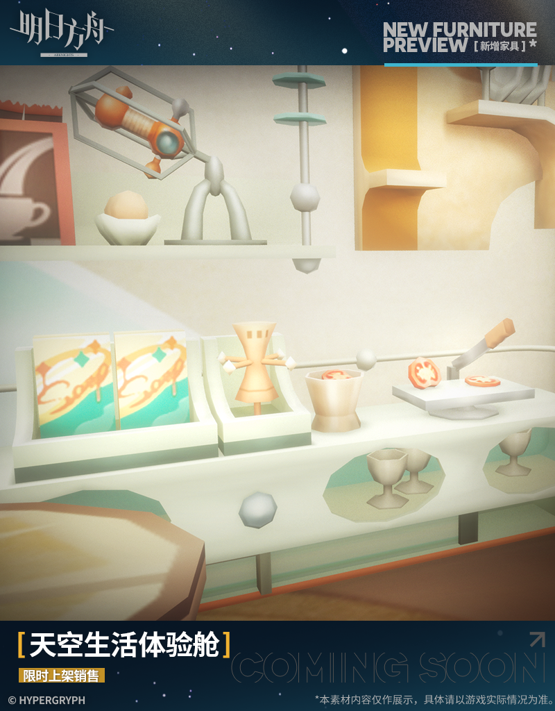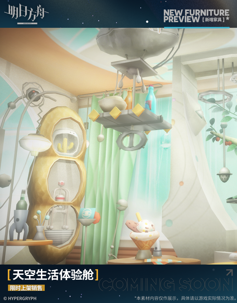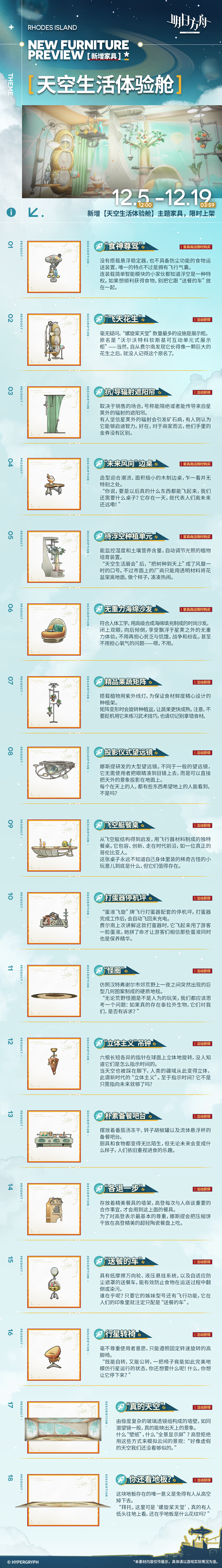 【新增家具】//天空生活体验舱根据哥伦比亚“螺旋桨天堂”浮空实验舱复刻的房间。最尖端的装置往往拥有别出心裁的外形,请不要擅自揣测它们的用途。参观者务必仔细阅读门口派发的说明手册,若因操作不当造成安全事故,请自行——或让您的保险公司负责。_________________新增【天空生活体验舱】主题家具,限时上架家具商店贩售时间:12月5日12:00 - 12月19日03:59