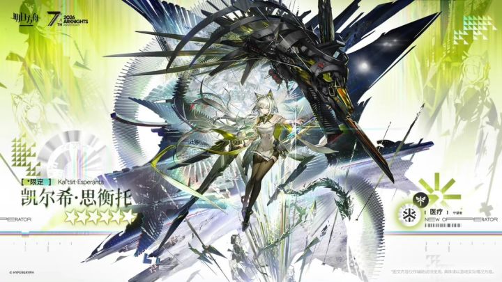 明日方舟七周年庆典直播于今晚19:30正式播出,官方一口气公布了海量新内容。备受期待的异格凯尔希实装确认为本次周年庆的六星限定干员拾尘凯尔希,主线剧情也将围绕其复活展开。此外,另一重量级六星限定干员循道者塞雷娅也将同步上线,两位角色将通过周年限定卡池获取,并实行300抽井的保底机制。福利方面,鹰角网络给全体玩家带来了一份七周年大礼,最高可累计获得约38000合成玉与至纯源石,并免费赠送一张可在限