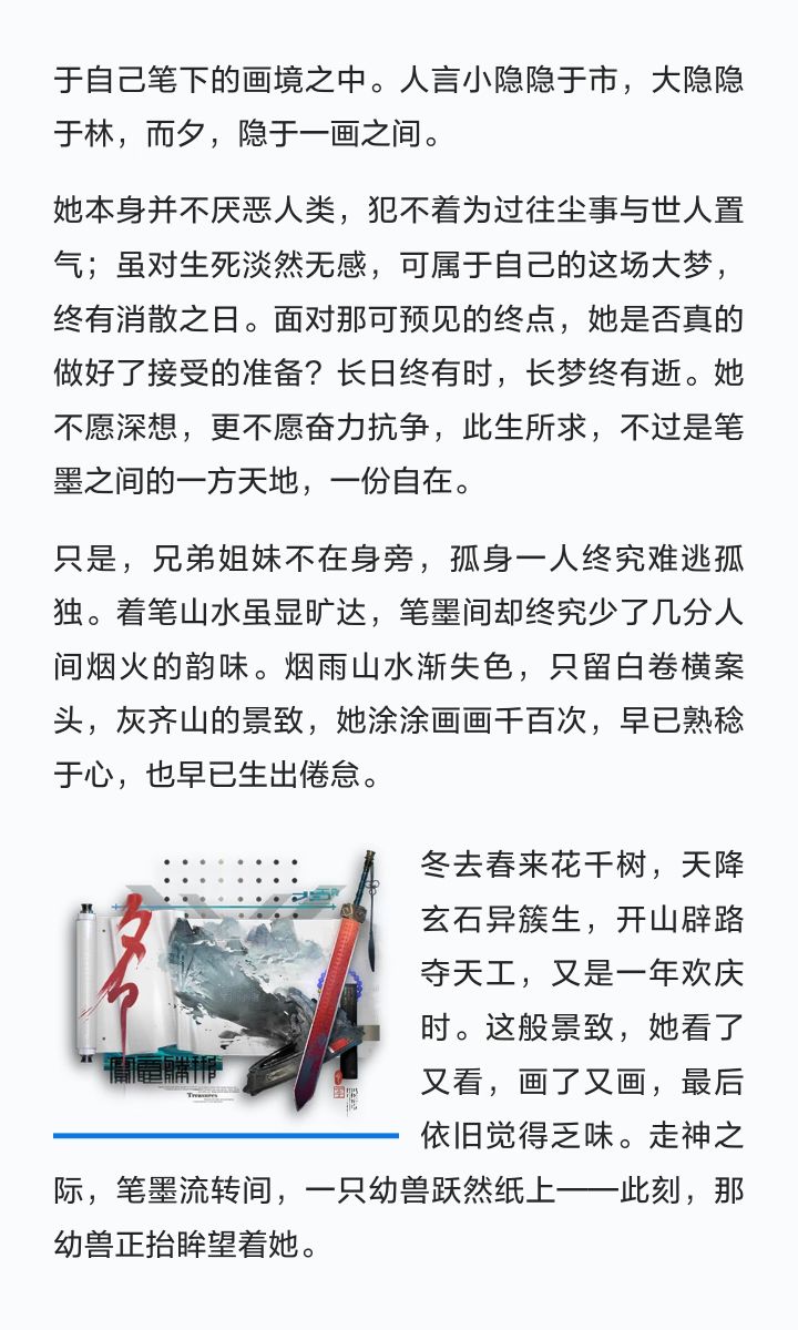 关于夕的人物志,岁家真正意义上的开篇故事。由世入画,再到由画入世,如梦似幻,却不得不醒。陈的人物志也在筹备中,想更全面展示这个角色,如果有什么想了解的干员,也欢迎评论区交流。我们下篇文章再见。#明日方舟 #明日方舟剧情 #明日方舟辞岁行 #明日方舟夕