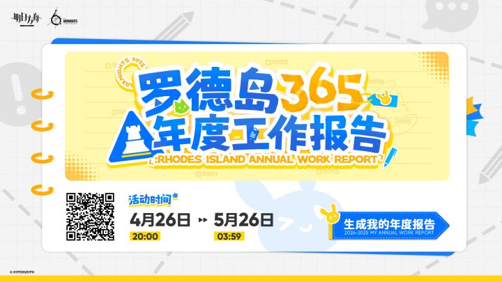 【罗德岛365年度工作报告】网页活动现已开启活动链接:https://ak.hypergryph.com/activity/annual-work-report-2025/?source_from=taptap活动时间:4月26日20:00~5月26日03:59