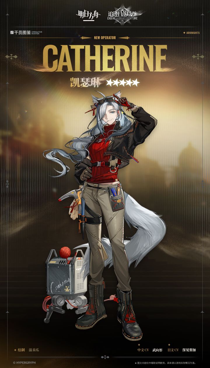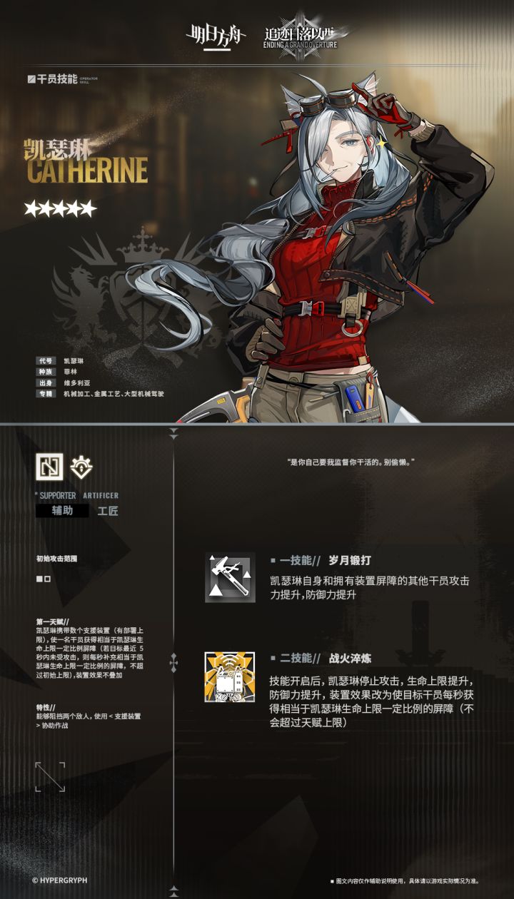【活动奖励干员】//凯瑟琳“不用客套,博士,我只是来看看我那个孙子。他肯定有些小玩意要藏起来,我先在你办公室坐一会儿......你想让我帮罗德岛做事,也不用藏着掖着。”____________“凯瑟琳说了什么?”洛洛问费斯特。“哦,没啥,她让我在这里也要认真工作,”费斯特放下电烙铁,挠了挠头,“还让我别再那么莽撞了,就这样。”“凯瑟琳奶奶说了什么?”教师问孩子们。“奶奶讲了个造心脏的
