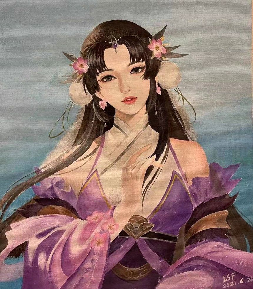 羊徽瑜--丙烯颜料,璟瑜荷徽一个温柔女子赫然跃于纸上,轻抚发梢,歪头莞尔眼含秋波,令人动容也不过如此 三国咸话绘画组—小池