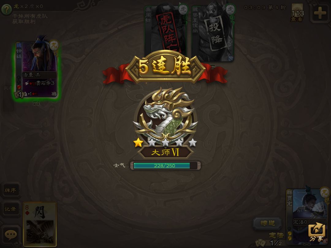 事实证明,菜和官阶是两码事,我之前千夫长上大师的时候有人说我升校尉就上不去大师了。但是此乃天子御驾,尔等谁敢近前!有个词叫良性循环了解一下。什么,你说队友如果没有我就玩不到了? 低段位就屯田日久,当见奇功➕三个齐上也不是我的对手➕吾乃江东小霸王孙伯符➕我这把老骨头不算什么(当然,如果没李昭焦伯也可以玩他们),就可以解决百分之九十五的局,剩下的百分之五看有啥玩啥。 还有,想上段的需要抓住时机,谋高顺