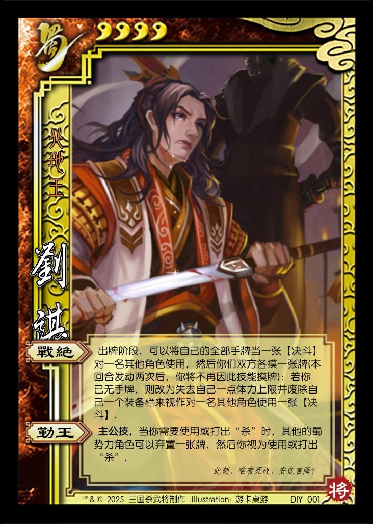 三国杀经典名言:拼点无弱将。不过也不是说所有的武将拼点都有正向收益,比如羊祜,一旦拼点失败就不能对对方用牌,意味着一个回合不能进攻。今天给大家介绍的他与其他拼点的武将不同,是唯一一位希望拼点拼输的武将,他有四血四技能但却不是史诗武将,一起来看看吧。 武将技能 佯解:出牌阶段限一次,你可以与一名角色拼点,若你没赢,你可以令另一名其他角色视为对与你拼点的角色使用一张无距离限制的火杀。 拒降:限定技,其
