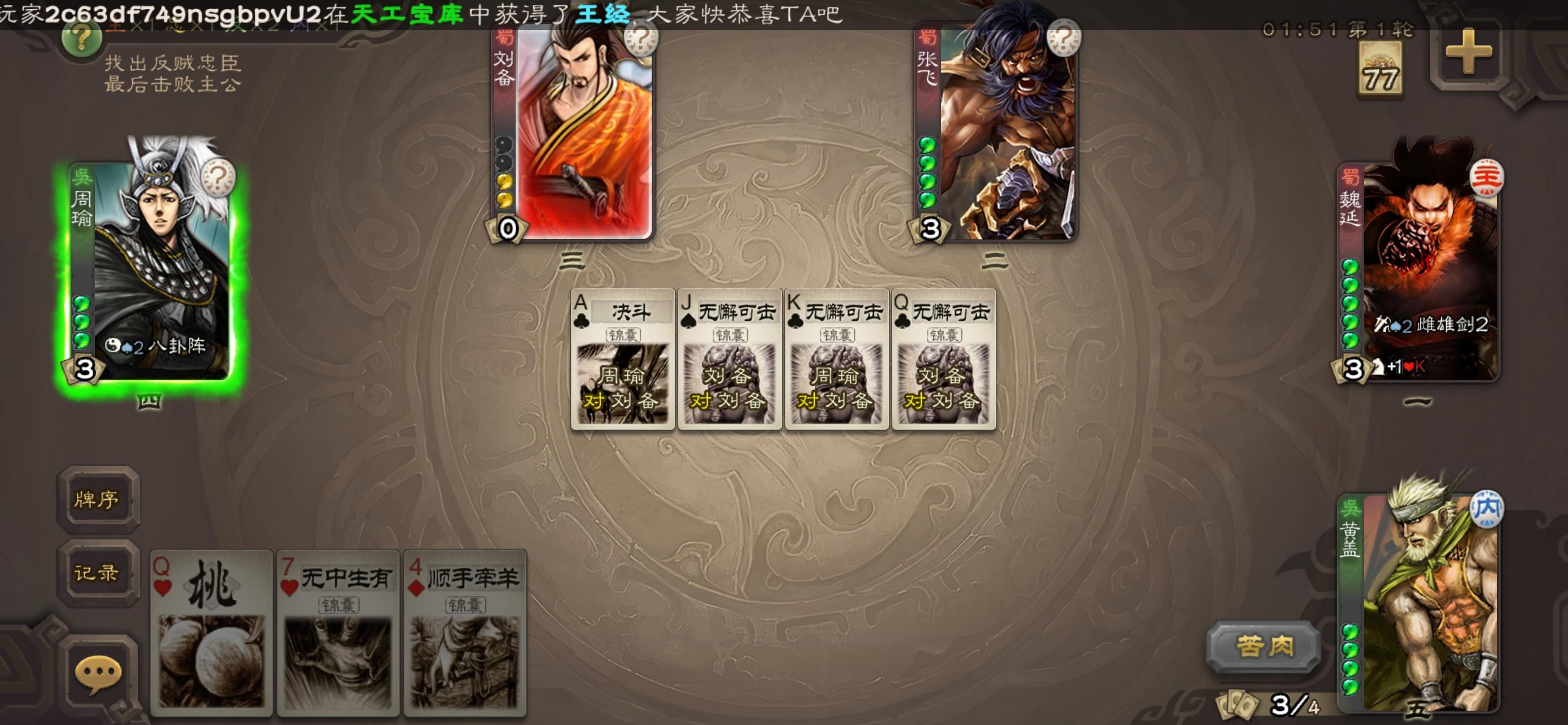 【论坛活动】浓情腊八礼岁末温粥,熙暖如年,在此寒冬岁末一口温暖的腊八粥无疑可以很好的温暖你我,而在三国杀中各位主公可以开启热辣对决,粥游三国,享受暖心战局与自己最爱的武将北伐军八,挥师斗地主,在三国杀内,决胜千里【活动时间】1.22-1.29 【活动内容】分享与自己的爱将在任何模式进行游戏的截图即可: 【回帖格式】游戏ID:游戏截图: 【活动奖励】成功参与本活动的杀友可获得招募