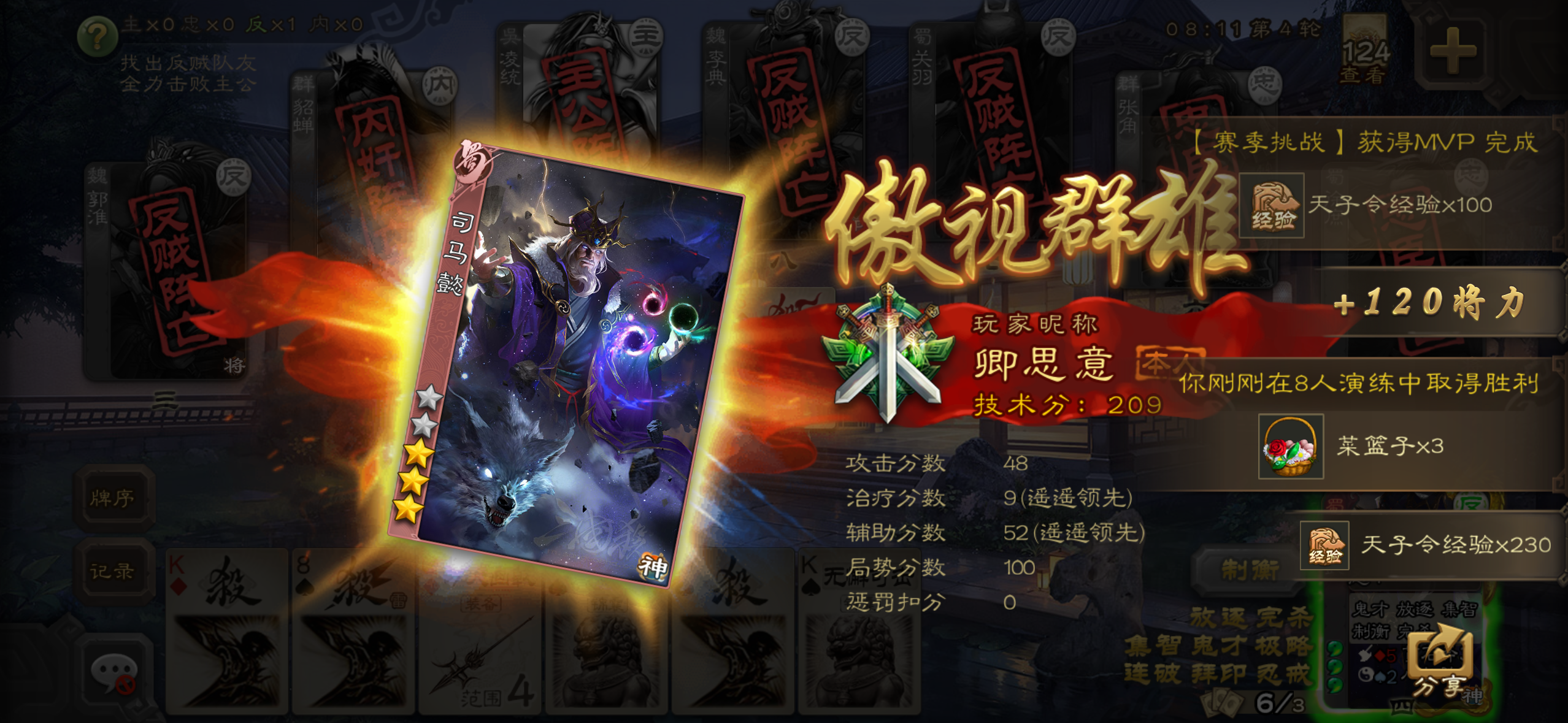 加上充值送的一些搭子武将,将力刚好过大将军的线。