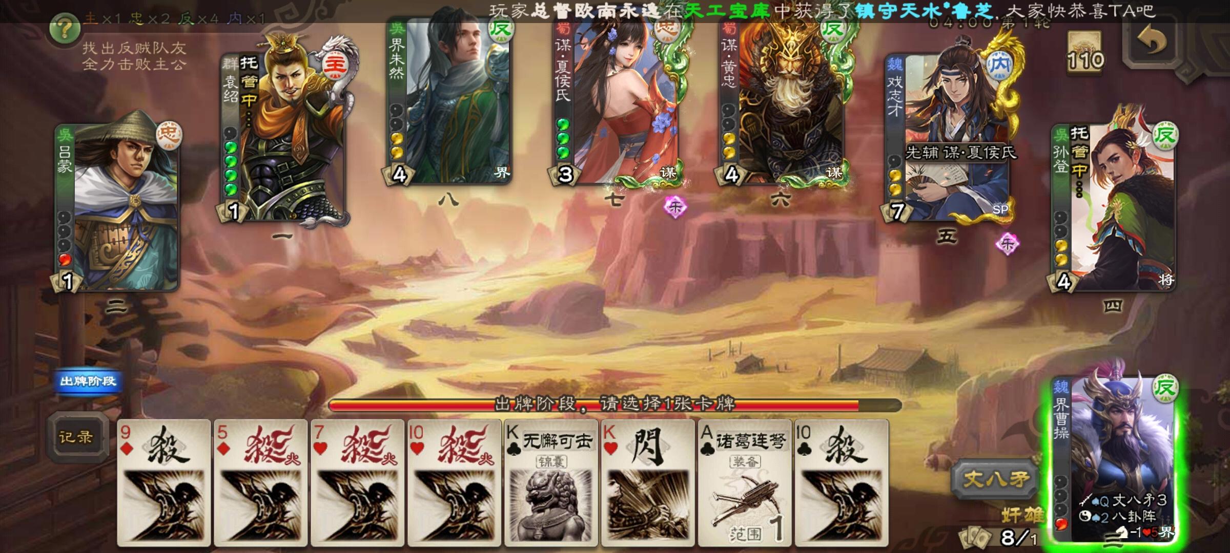 【论坛活动】大寒好礼朔风渐紧,霜雪覆山河,时至大寒,岁暮天寒。值此凛冬收官之节,三国杀论坛邀诸位主公齐聚一方!煮酒论英雄,沙场决雌雄,这个大寒,我们以牌为刃,以谋为锋,于方寸牌桌间再现三国烽烟。无论是军争八人场的尔虞我诈,还是斗地主模式的智勇博弈,亦或是国战阵营的合纵连横,都等你来一展身手! 【活动时间】1.15-1.22 【活动内容】分享自己在任意模式进行游戏的截图即可: 【回帖格