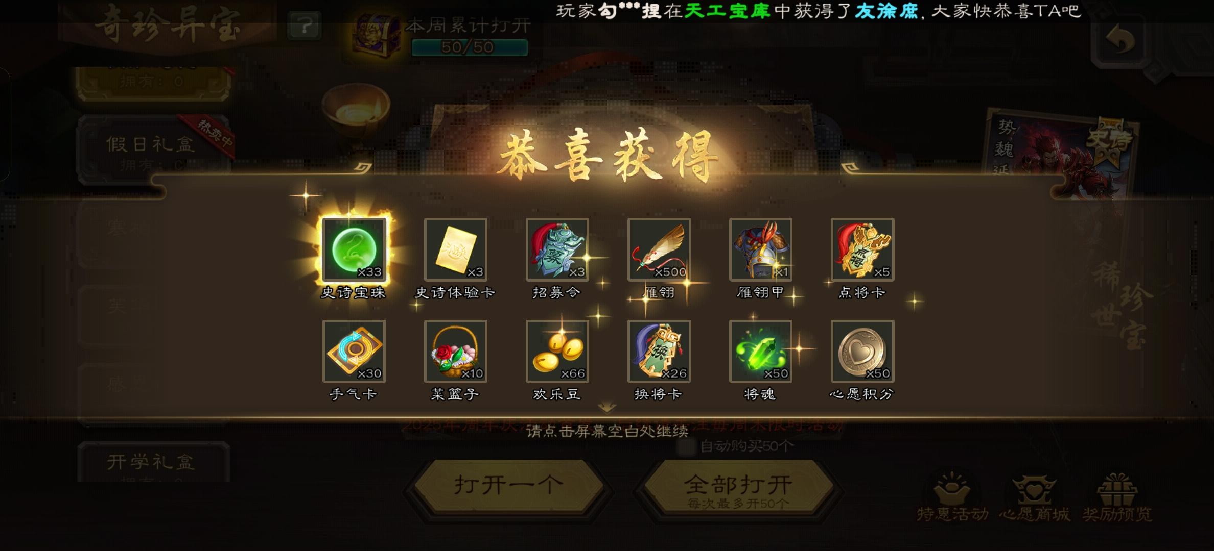365个日夜流转,一半是汗水浇灌的成长,一半是星光照亮的坚持,每一步脚印都算数。人间烟火处,年味儿渐浓,小时候是期盼,长大后成了回忆,岁月终在平凡里沉淀出温暖底色。回首这一年,删繁就简,专注所爱,那些沉默的积累、勇敢的破局,都成了最珍贵的馈赠。【活动时间】12.27-1.2【活动内容】岁末回望,皆是序章;新年启封,美好常存。谁是2025年你最喜欢玩的武将【回帖格式】游戏ID:最爱玩的