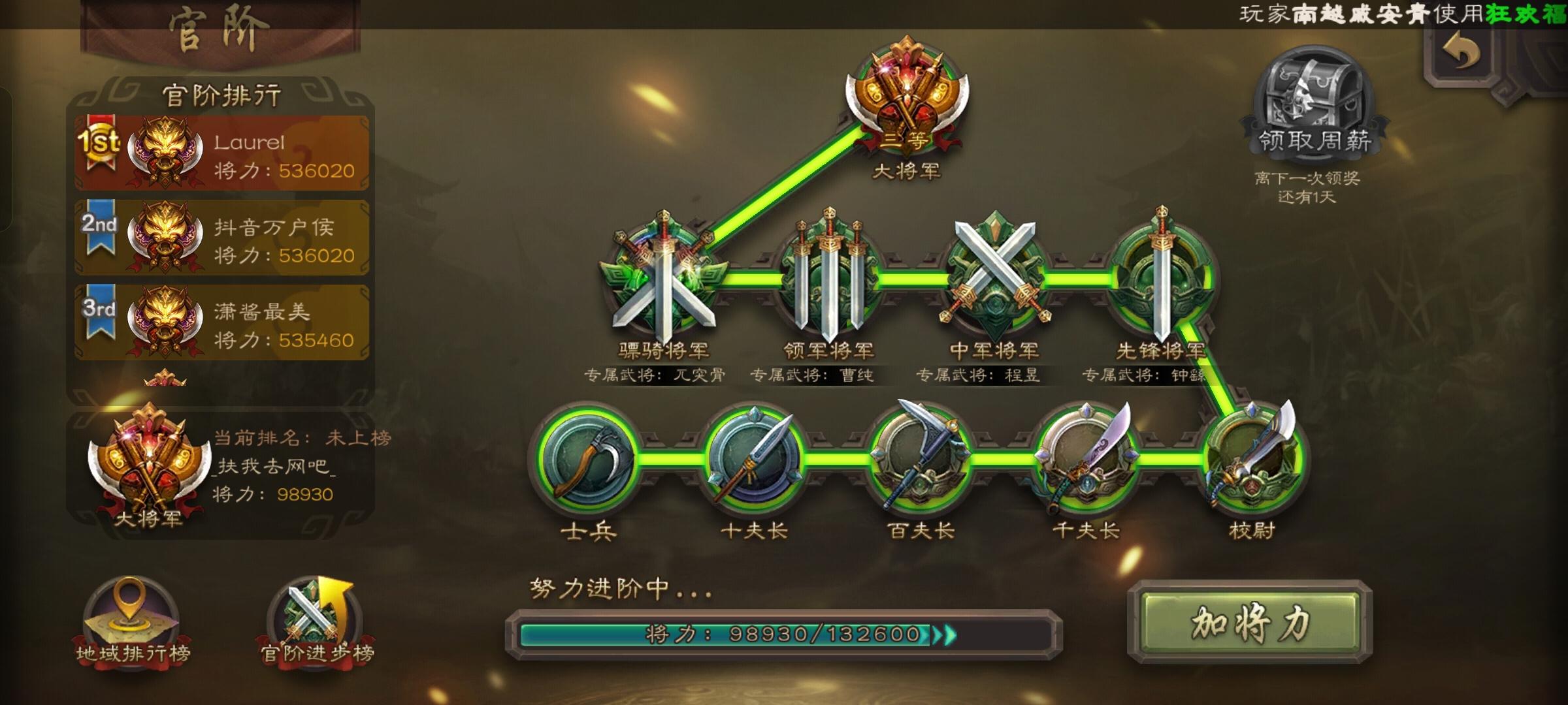 纪念一下零氪党的第二次充值和升大将军