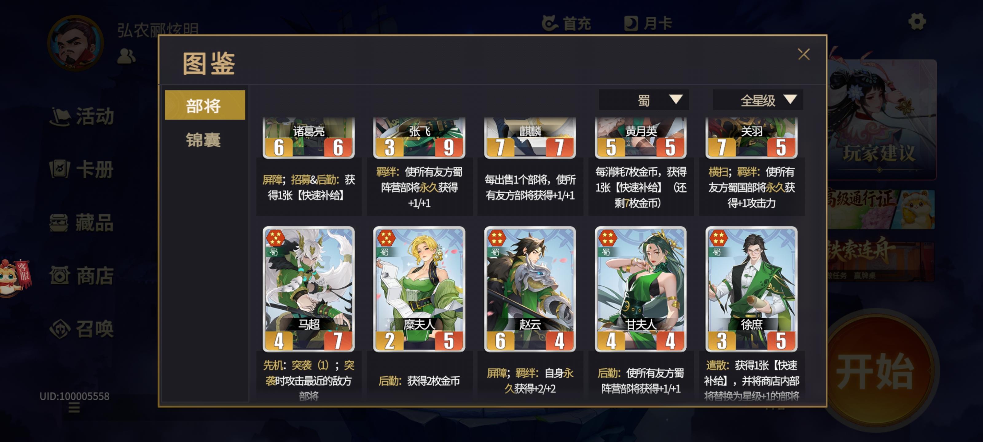 本人游戏id:100162526 乱世妖星[1]本帖内容只针对最终阵容作出讲解,且偏向于新手向,如有不同见解可以在评论区提出[2]阵容的摆牌顺序并非实战的摆牌顺序[3]本系列帖具有时效性,看帖前先看发帖时间基础阵容:诸葛后勤蜀关羽+费祎+黄忠+张飞+司马徽+诸葛+诸葛此阵容为新手最爱,无需过多操作即可实现数值爆炸,只需要每回合把诸葛的后勤锦囊给张飞吃即可。此套阵容的数值提升主要源于