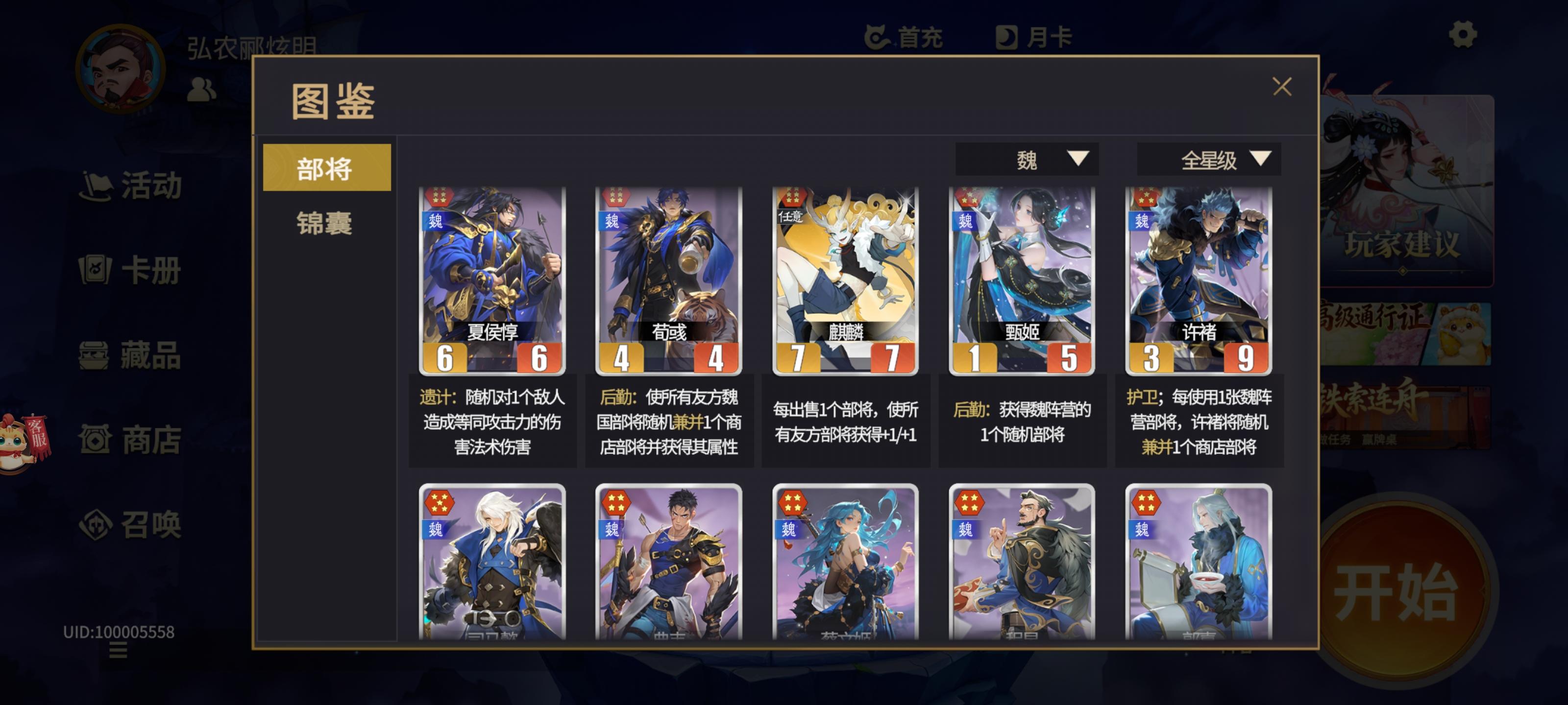 一、黄巾黄巾主流玩法是以马元义、张梁为主力的法强流派,其中1号位和3号至少搭配1个马元义,另一个位置视局势不同,可选择上阵第2个马元义进一步提升法伤,或者上阵咒术师或术士,以求开局秒掉对方的核心卡(如贾诩、贾南风等等),或者上阵何进来补牌补经济。主要阵容参考下图:另外,也有以咒术师、术士为主力输出,以南华老仙+卢植的组合增加法强,这种打法多为吴国太主公,参考下图:【克制】无论那种阵容,黄巾
