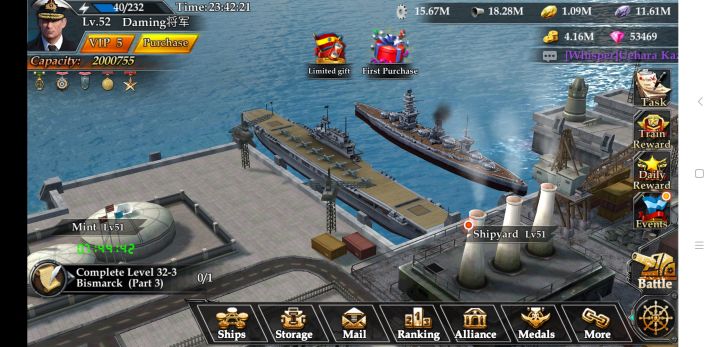 腾讯服玩了很长时间,怀旧一下。刚玩的时候觉得是一款非常新颖的海战游戏,但是时间就了就觉得玩法单一了,即使后来加入了一些新机制也没有根本改变,没有多少操作,全凭叠数据。限时战舰和特级舰长跟普通船差距太大,不花钻石抢限时船和舰长根本提升不了战力。