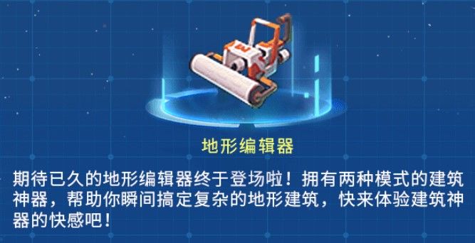 Hello各位《迷你世界》的冒险家门你们好啊,我是你们潇洒帅气的胖哒叔,新版本(0.41.5)已经更新上线,本次版本的重要新功能:地形编辑器也已经和大家见面啦! 作为一个功能强大的新道具,它的使用操作也是有点难度的~那么胖叔也是经过了对它的研究,掌握了他的使用方法,在这里讲解给小伙伴吧!地形编辑器需要在创建开发者地图,在背包-工具页面下找到: 手持地形编辑器点击使用会进入笔刷模式,一个全新的界面: