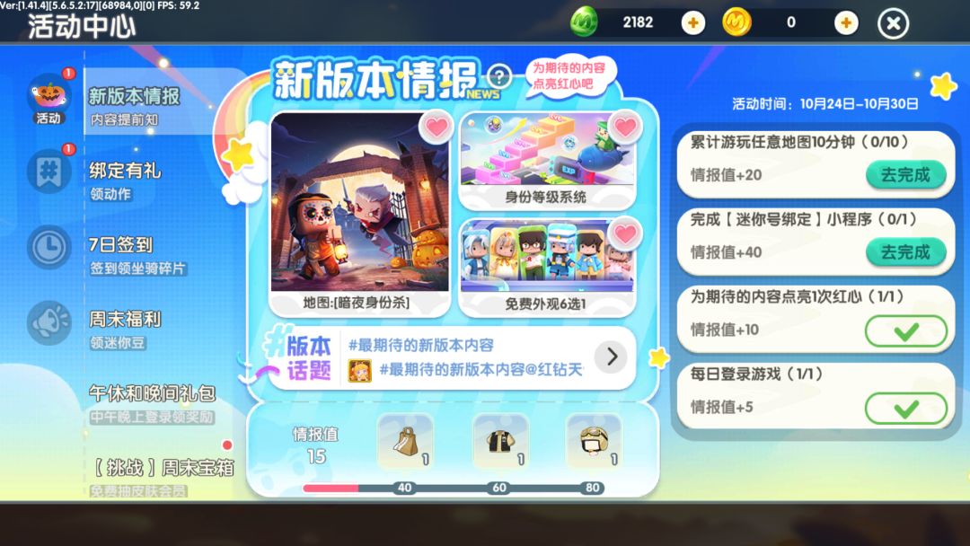 原创作者@兔美美 发布@广东何启朗阿朗plus ai 【情报速递】:情报员兔美美今天给大家带来重磅爆料!万圣节即将来临,神秘恐怖的氛围开始蔓延.....迷你世界也即将迎来新版本(嘘,具体几号更新我先保密)😏。根据本兔美美对活动中心一新版本情报活动的研究分析,情报线索透露了三个重要的更新点: 第一:地图【暗夜身份杀】:看地图展示的封面和名称来推测,这应该和万圣节有很强的关联,身份杀?诶,我大胆猜