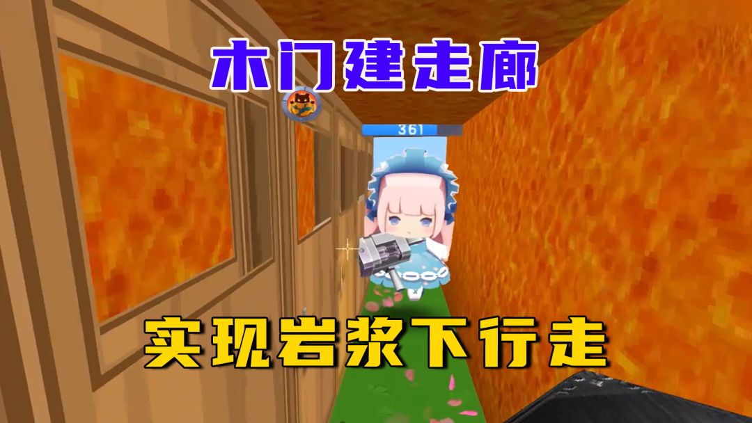 迷你世界:岩浆下降快建房,木门建走廊,实现岩浆下行走