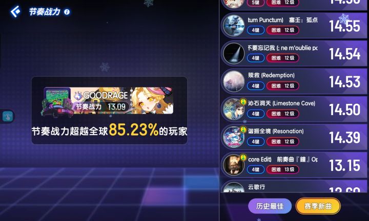 后来节奏大师复活了,我也在节奏大师复活后立即回归了,好消息是继承之前账号的角色及等级,坏消息是……这些老角色有的可能过时了(个人一般用Miss改Great的电音女王,特殊情况下用Great改Perfect的吉娃娃)。