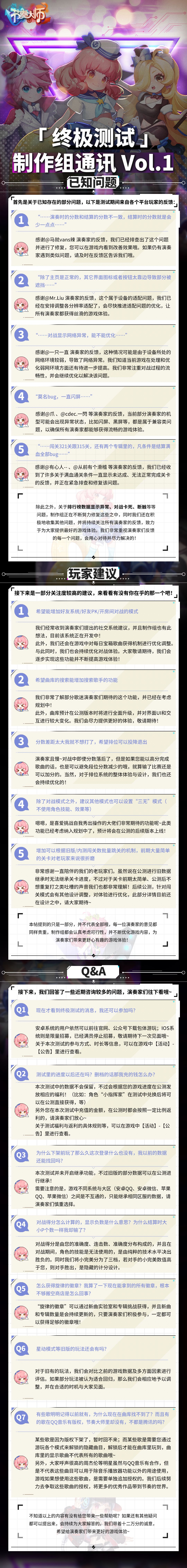 亲爱的演奏家们,大家好呀~ 距离我们的终极测试开启已经过去半个月之久啦,在这段时间里,我们听到了来自演奏家们许许多多的声音:喜爱的、不满的、期待上线的、分享体验的、反馈问题的、认真建议的……林林总总,不胜枚举,在此,制作组向支持着我们的每一位演奏家,致以最诚挚的感谢! 另外,还有一声抱歉需要说给大家。服务器开启初期产生的BUG问题较多,尤其是在对战模式中,截止本周四的更新,我们已经陆续将对战模式中