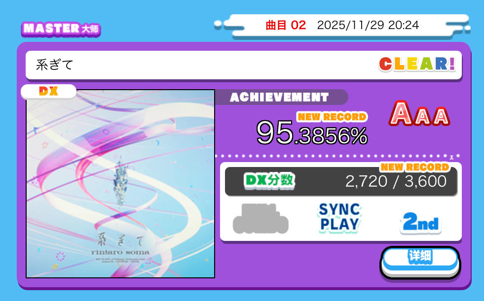 好不容易再开次大师月卡,先把上次的遗憾补了 两个月前终局6k也就勉强S的水平,圣所6knm更是远难于其hd只有A,基本上尾杀都见不到就已经断的一塌糊涂了 不过经过两个月多种音游的练习,明显感觉自己6k键盘力提了不少,不只反应在节奏大师 想当初节奏大师刚复活的时候连幻葬6k都ap不了,到现在随手3S。23年年末那会我本以为自己的实力已经快到上限了,不过现在我感觉自己的潜力还远远不止于此