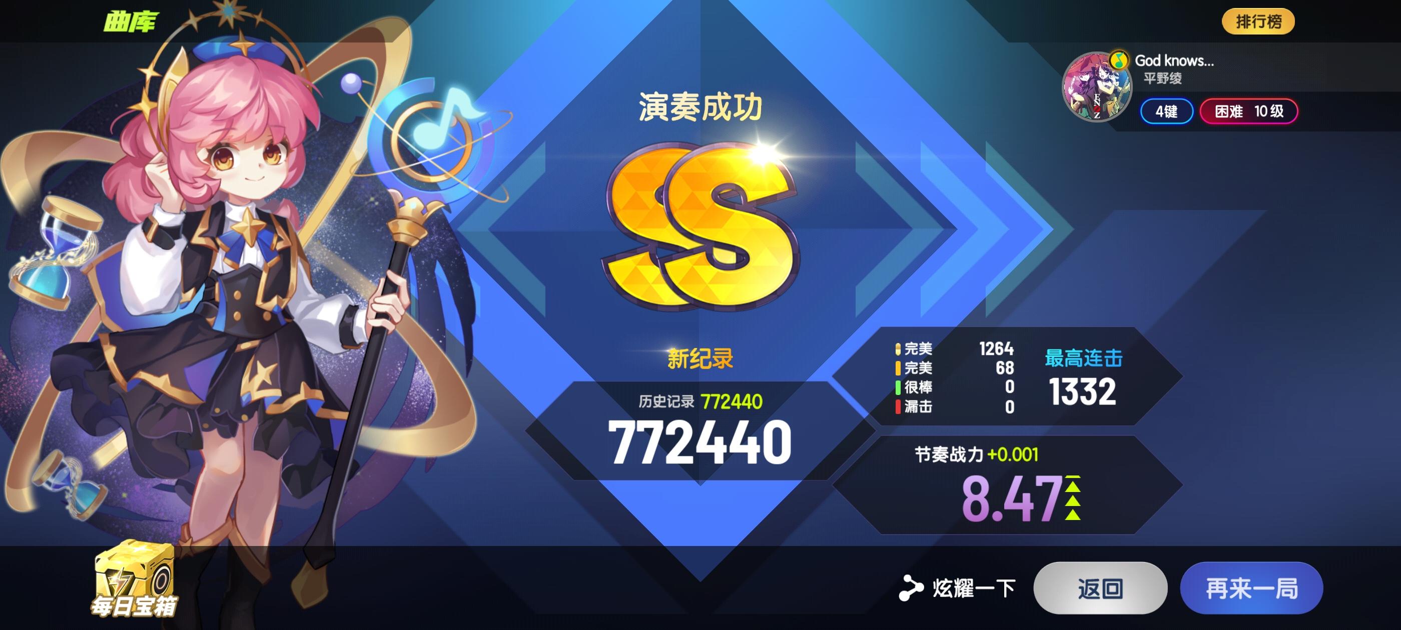明明很久没玩了,底力却上升了一大截,这是为什么呢?我左思右想,恍然大悟,心境是可以大幅影响底力的,如果心如明镜,念头通达,那么难题就不算是难题,魔王谱也不算是魔王谱,随心而动,顺道而行。以前的我太执着于拿高分高tp了,反倒是没今天的我强大。怎么想才是最重要的。正如北海老爸所说:北海,要多想。