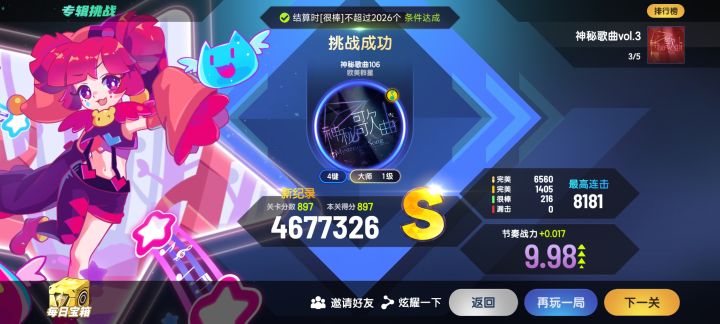 #节奏大师魔王曲 极限3浴火焚焰结果突破8180音符,破480万分了,封面像尾杀姐姐砍我忿怒之剑,最高S评分了。[表情_狗头][表情_狗头][表情_狗头][表情_狗头][表情_狗头]