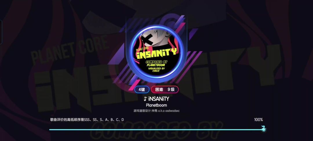 #节奏大师 歌名:iNSANiTY 难度:【4键】困难(9级)