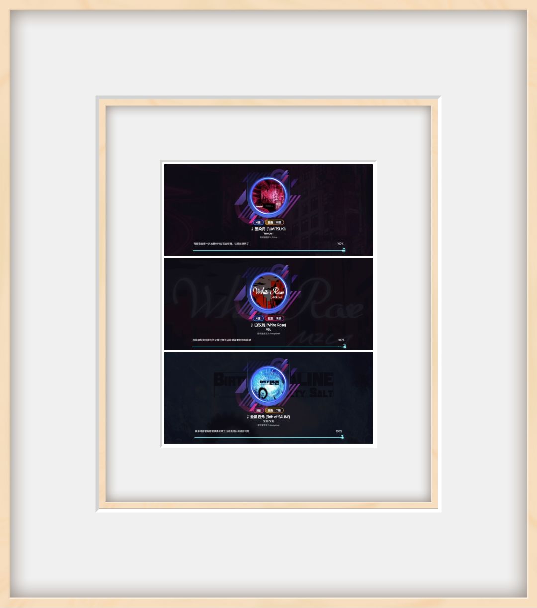 #节奏大师 歌名:白玫瑰 难度:【4键】困难(8级) 歌名:盐晶启元 难度:【5键】普通(7级) 歌名:墨染月 难度:【4键】普通(8级)