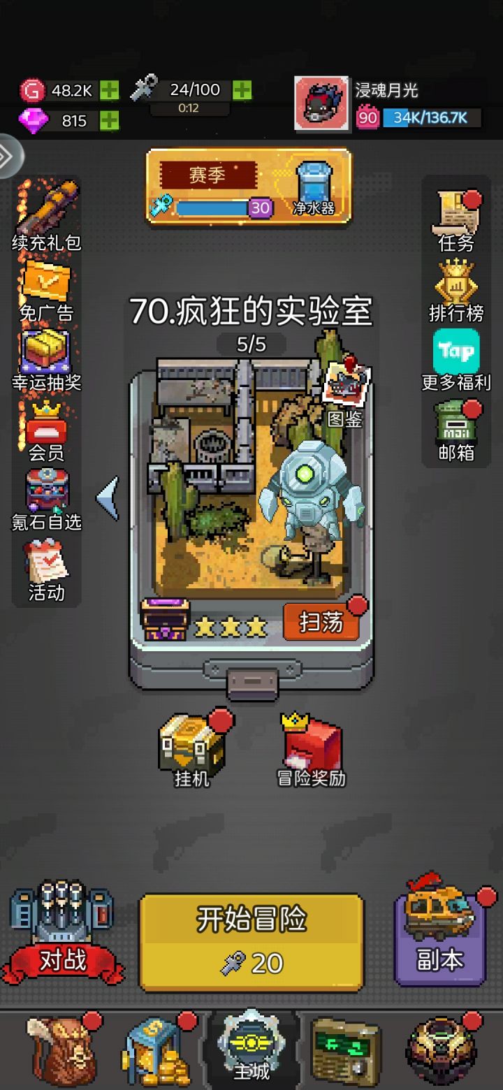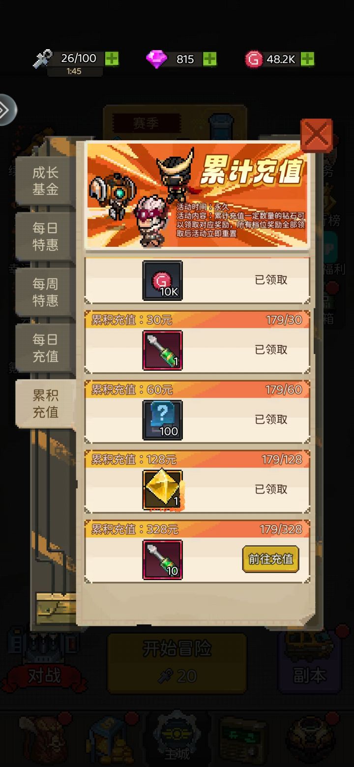 如题我是开服老玩家,充了179个人心得哈先说充值,免广告还是可以的,毕竟少去了看广告的时间,然后可以买个战令(净水器),给2把黑洞一把合成了一把留着,毕竟挺稀有的,其实这种小游戏开一个月的免广告,一个月的月卡,就够了,以后常玩就开永久免广告,花个几十就行了,游戏里各种通关礼包都不买……当然了土豪随意哈 先说角色个人感觉闯关给的猩红王子挺好的减技能cd,我就是用它过关的哈,个人推荐,扳手哥(变种