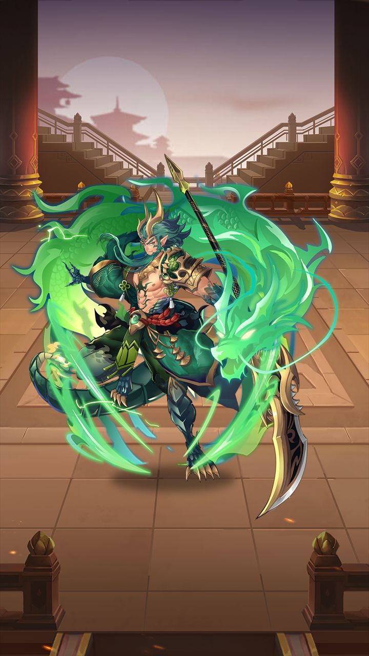 武将简介:关羽是位具有单体高爆发的武将且造成伤害后恢复自身生命值。普攻:攻击敌方单体,对其造成物理伤害。 技能:攻击敌方单体造成物理伤害,并添加2回合(狂暴)状态,(狂暴)是免疫控制和增加暴击率、暴击伤害。天赋:9星特性:触发暴击时,38%的概率追加一次普攻,每回合仅可触发2次。名将1星:释放技能可以将伤害量的90%来治疗自身生命值。名将3星:每次敌方武将回合结束会有8%的概率立即获