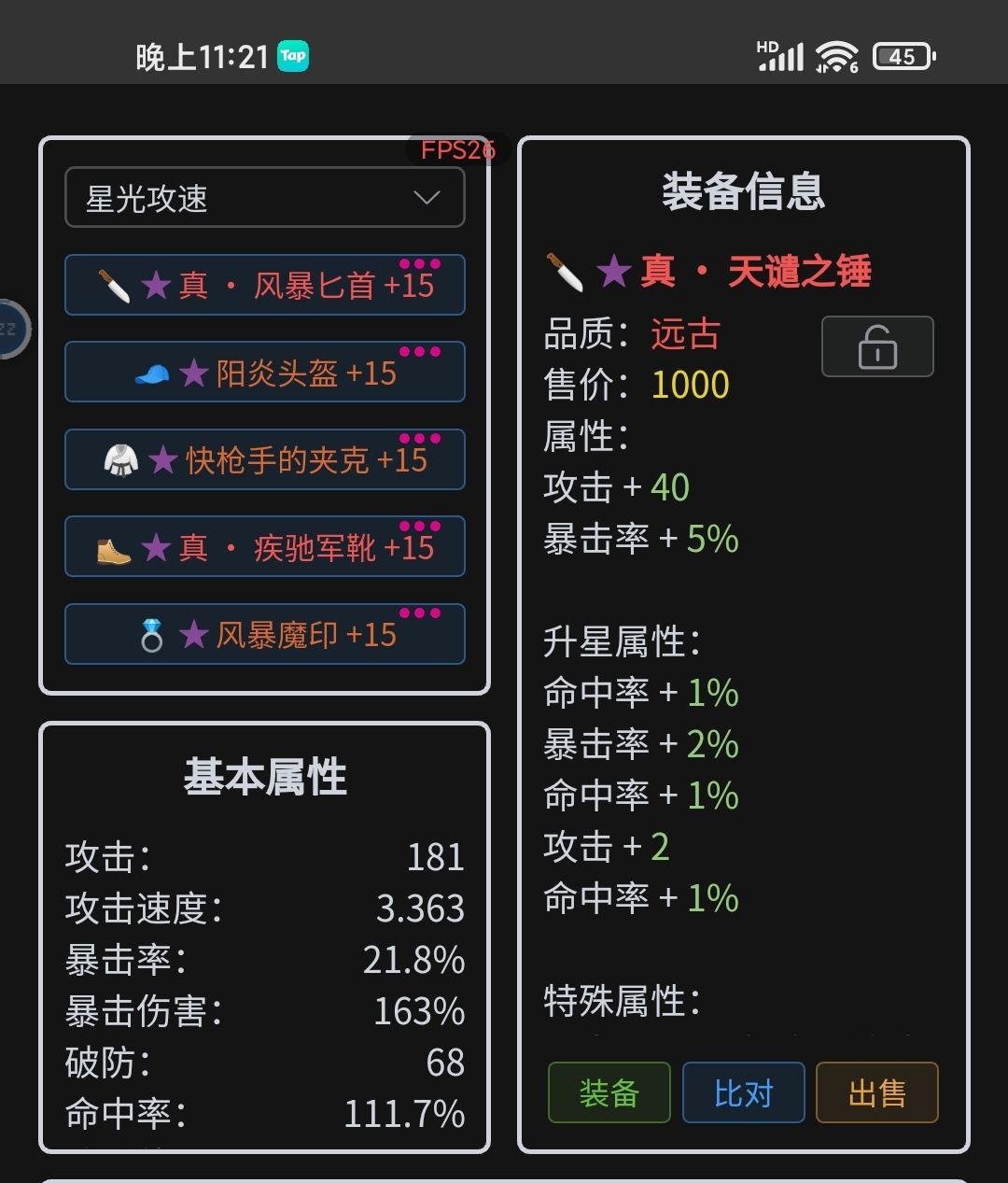 本篇开始之前先科普一下什么是属性价值。 人物的基础面板有攻击、攻击速度、暴击率、暴击伤害、破防和命中率。 这几项数据之间肯定不是1:1等效的,所以我们要规定一个值来评判这些属性,按各属性强度来说是很难规定的,所以我们按照属性的获取难易度来规定,每件装备的属性各不相同,但有一样东西是相同的且易得到的,没错就是装备升星词条[表情_微笑] 将装备升星词条规定属性基础价值有一个重要原因,游戏里的装备基础属