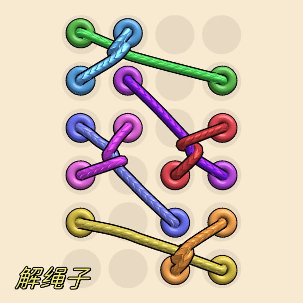 将各种扭结在一起的绳子逐一解开,让绳子间没有交叉即可顺利通关!没有时间和步数的限定,你还能挑战成功吗?