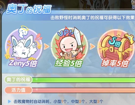 1. 挂机相关基础知识 Q:在这个游戏里,挂机刷怪能干吗? A:可以得到大量Zeny、Base经验、Job经验,帮你快速升级!另外,运气好的小伙伴还能刷出稀有卡片! Q:那我是随便找个地方挂机刷怪就可以了吗? A:不是哦!想要高效刷怪,得注意这三个方面——【奥丁的祝福】、【怪物种类】、【组队加成】 2. 奥丁的祝福(以下简称“奥丁”,和提高刷怪收益有关) 省流总结:多攒点奥丁,在打开奥丁的状态去刷