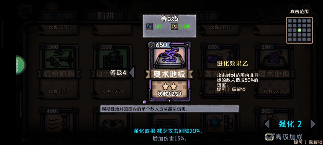《最终坚守》是一款结合了卡牌构筑、roguelike和塔防元素的游戏,以下是一些通用的通关诀窍: 1. 陷阱选择与搭配 - 游戏中的陷阱种类繁多,合理选择和搭配陷阱是通关的关键。例如,火焰流陷阱搭配(如硫磺地板、火焰陷阱、烈焰地板等)可以造成范围伤害,而传导地板和炼金地板则能提供持续的高额伤害1。 2. 秘宝与神器 - 秘宝和神器可以为玩家提供额外的加成,如增加材料、提升陷阱伤害或保命等。优先