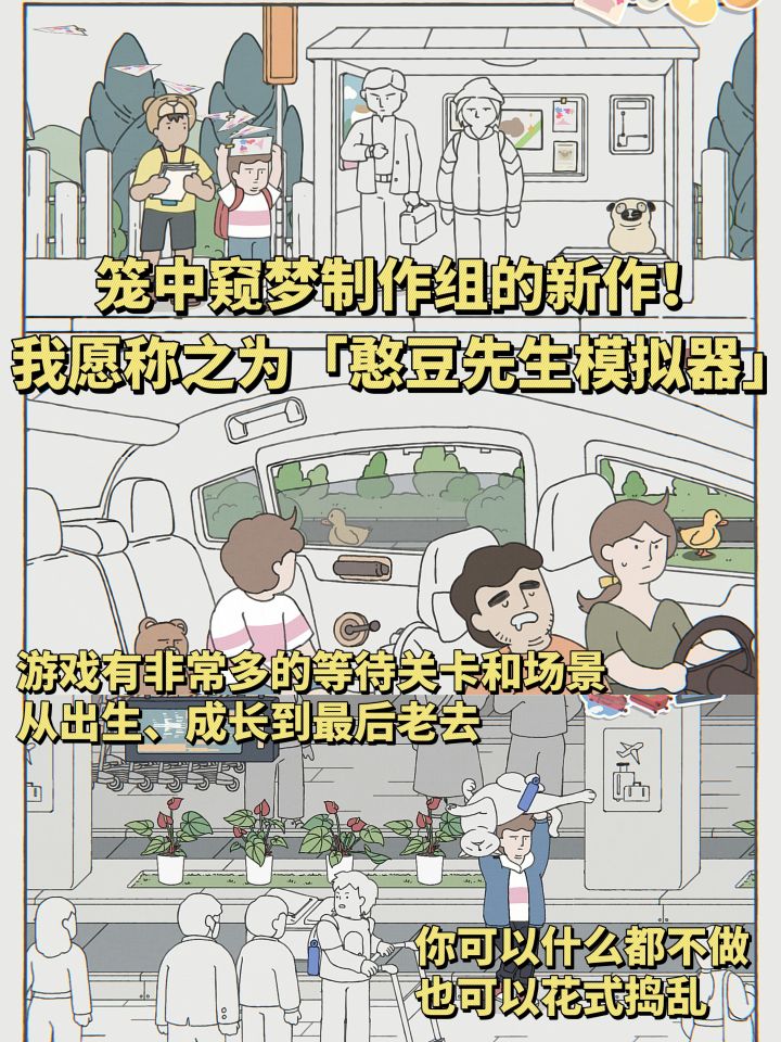 《笼中窥梦》制作组的新作!一款有种平静疯感的谜之搞笑手绘风解谜游戏! 在游戏里你可以看到: ✨花样百出的“等待”场景:等待上班高峰期那部永远上不去的电梯,等待假期路上的大塞车结束……每一个都似曾相识又感同身受! ✨独特的通关姿势:游戏通关主打一个自由发挥,你可以什么都不做等待游戏通关,也可以四处捣蛋,疯狂整活 ✨神奇生物出没:淡定路过的阿拉丁神灯,下雨天出没的河童……不经意间会有很