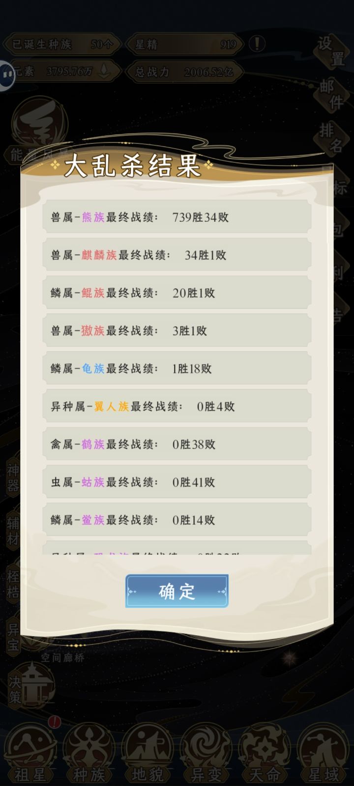 把地貌部分升级完了,一共是108个种族。除了异种属是6个红色等级,其他属各2个。人族就只有人族自己。详情见图。