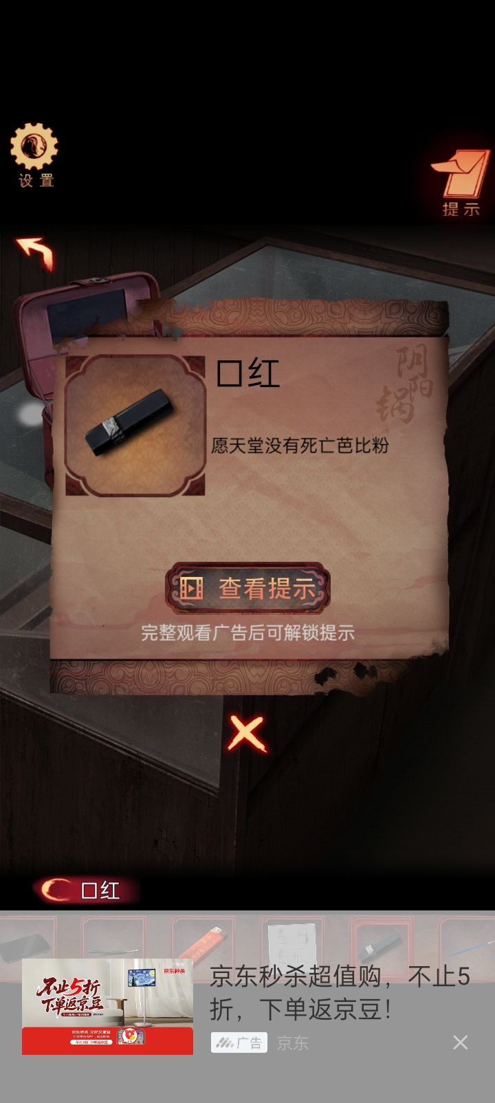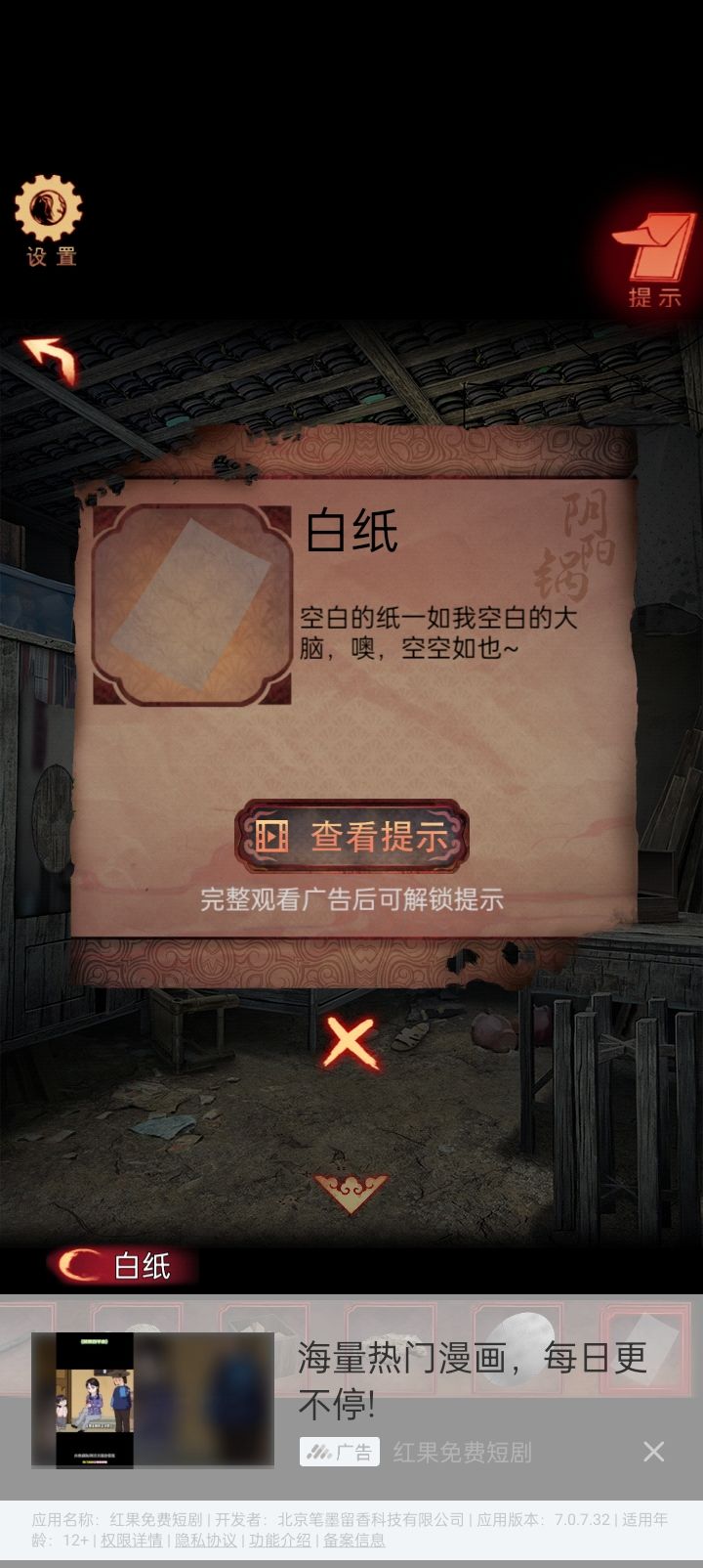第五章开门顺序没太看懂线索,试了几次不对不愿想下去了看了攻略,结果发现二四为肩这里和自己想的顺序反了,如果需要自己各种尝试各种猜的话感觉可以弄出很多结果,谜题这里的文字线索感觉还是给的抽象了,这块的谜题设计的不是很好。电池加锡箔纸点火头一次见。喜字单面魔方也花了挺长时间自己弄出来了。扇子密码也有点莫名其妙,不过好歹试出来了。中间还有因为不知道道具是用在哪里的而卡了段时间,最后给试出来。至于反应小游戏也还好,多试几次就行。剧情感觉最后草草收尾,莫名其妙就把人给说服了结束,至于彩蛋说的抄袭不清楚说的啥,题材还是画面什么的吗?即使不抄袭也还是觉得游戏画面什么的有的地方比较粗糙,谜题设计也还是有待提升,结合评论说立绘改了的事,如果这事是真的只觉得制作组心虚了。