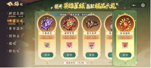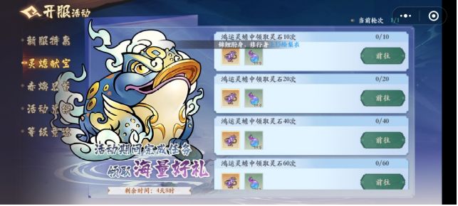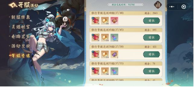 (1)新服会有专属活动福利——灵蟾献宝、赤离见首、等级竞速和升星大礼!点击灵石后面的加号进去鸿运灵蟾,通过阴阳炉聚灵获得螭龙鳞兑换丰富的奖励,等级竞速努力完成主线任务,提升聚灵等级,可以最大化提高角色等级,紧抓一个英雄升星,最快拿到升星奖励!(2)日常活动:通过不断通关主线章节,解锁每个章节对应的日常活动。①悬赏:优先高品质任务,若没有高品质可领取奖励为唤灵符和珍珠的任务。②日常副本:挑战关