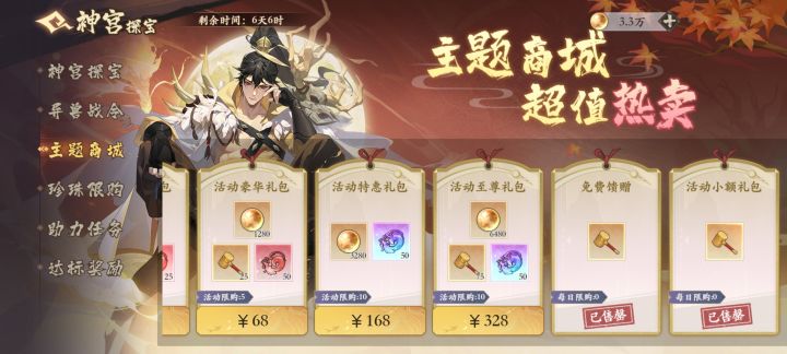 不保留道具的一百抽活动 因为这个没什么特别需要注意的地方,所以简单算一下一共要多少珍珠。 助力任务,每天4个锤子,7天,28锤子,不刷新的有12锤子,平民一共40锤子 战令,白嫖党是10锤子,买战令是一共是一只洪荒,两只红,50锤子 主题商店平民每天两个,一共14锤子 平民一共白嫖64锤子,要买36个单纯从锤子的角度,不算别的资源的情况下,需要把前面6个礼包买了,一共14