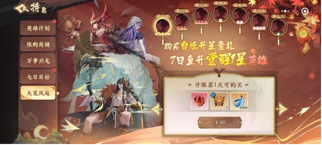 哈喽,我是弑天君,今天是新区的第二天,我重点介绍一下微氪玩家的氪金重点和充值特权,下面进入游戏! (1)新服特惠:微氪玩家建议入手开服臻选礼包和开服轻奢礼包,可以让你的核心英雄快速的崛起! (2)限购商城:推荐购买每月资源礼包、每周招募礼包和每周资源礼包。随着等级的提升,助战装备界面开启,陨铁可以快速提升自己的战力,拉大与其他玩家的差距! (3)大荒风起和英雄计划:氪金大佬的最佳选择,7天核
