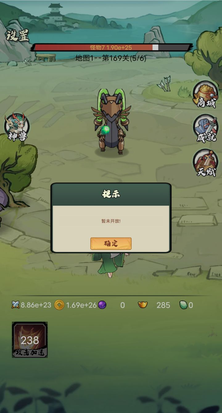 游戏主要属性 减小怪数 暴击率 跳关 还有1000元宝的自动点击 (功法)先主升级第8个 能突破了就升第1个 在突破升第2个 没有离线奖励 溅射怪物也是假的 原本想玩到1000层在睡觉的 920多层小怪打不动了 BOSS还能秒杀
