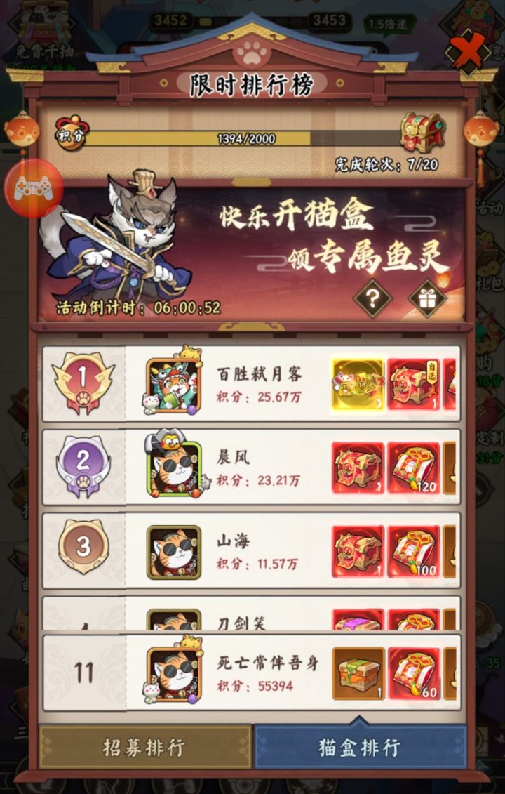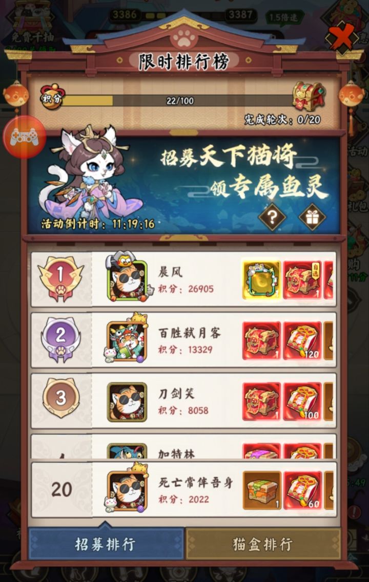搞个限时排行榜活动非常之粗糙,排行榜显示我有2022积分,结果奖励显示我1轮都没做完,反映了半天给个回信是我有领完了,一共2022积分,100积分领一次,一共20次,剩下22积分!按照他们的说法,我猫盒排行榜55394的积分岂不是早该完成20轮的奖励了? 又是显示问题我只完成了7轮?怪自己粗心没第一时间注意到呗,吃亏是福,退游了!