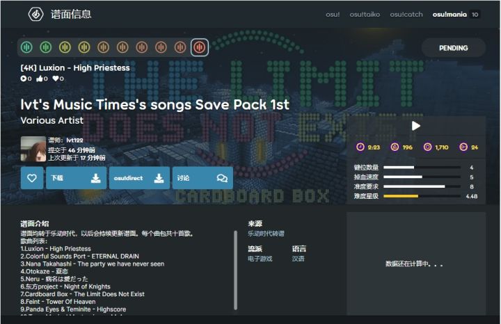 【乐动时代谱面分享】目前正在转谱子到osu mania中