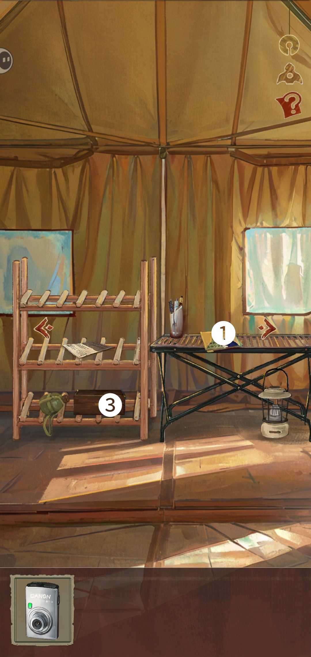 || | 第一章:入梦 [门外] 1.挪动凳子到电箱下方;打开电箱,获得【钥匙包】 2.打开【钥匙包】,获得【钥匙】;用【钥匙】打开门,进入书房 ……✄……✄……✄……✄……✄…… [书房] 3.点击拾取桌子上的【奖状】;书架上的【胶布】 4.给【奖状】贴上【胶布】,获得【万能奖状】 5.把【万能奖状】贴到相框上,打开密室的门,进入隐世 ……✄……✄……✄……✄……✄…… [帐篷左] 6.点击获取