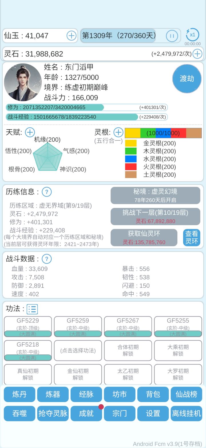 到了练虚自然转五行合一的。。还是刷天灵根比较快。。